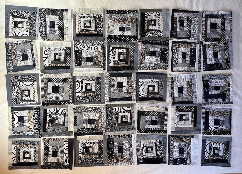 At 12.5 x 12.5 inches each (12 x 12 inches finished) it would become a bed size quilt…oh no – let me try some fake math – the quilt would end up around 72 inches by 84 inches…actually larger if I added a little border around the quilt to make the blocks “float”.
