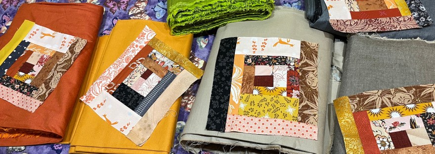 At the retreat this week, which runs Monday to Friday, we are going to work on improvisational piecing log cabin quilts (I will review the “log jamming” technique I first learned in a class at the Stitchin’ Post many years ago) like the one share in yesterday’s post: