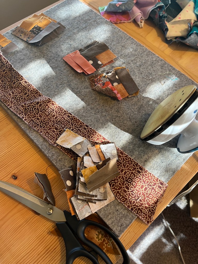 Here is a quick overview of how I do it, there are several different approaches and in the post ScrapHappy May: Scrap Happy Retreat! I shared links to YouTube videos from the Stitchin’ Post where I first learned how to do it.