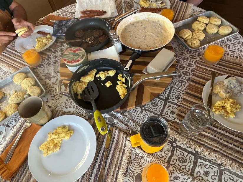 John made us his famous (and amazing) biscuits & gravy breakfast to start our day: