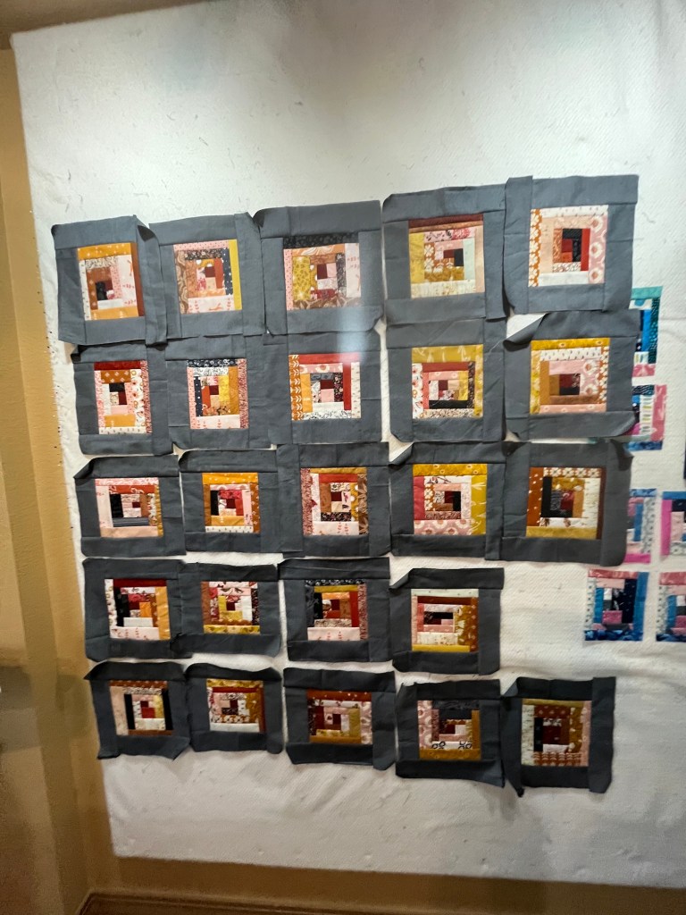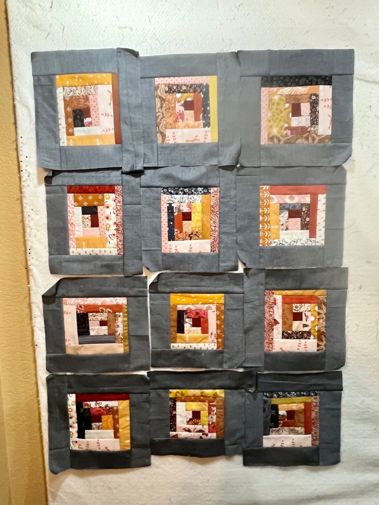 I realized didn’t share very many photos or details about the scrappy improvisational log cabin blocks I made at the Scrap Happy Quilt Retreat (link to all the posts related to this 5 day retreat) last week.