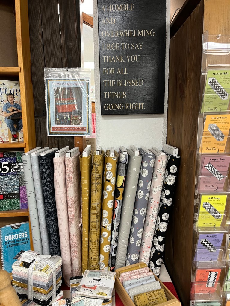 I didn’t take many photos in Treelotta but if you’d like to see more of this awesome shop (where I’ve also taken bag making classes), see the post Rocky Mountain Quilt Shop Hop 2021, Part IV.