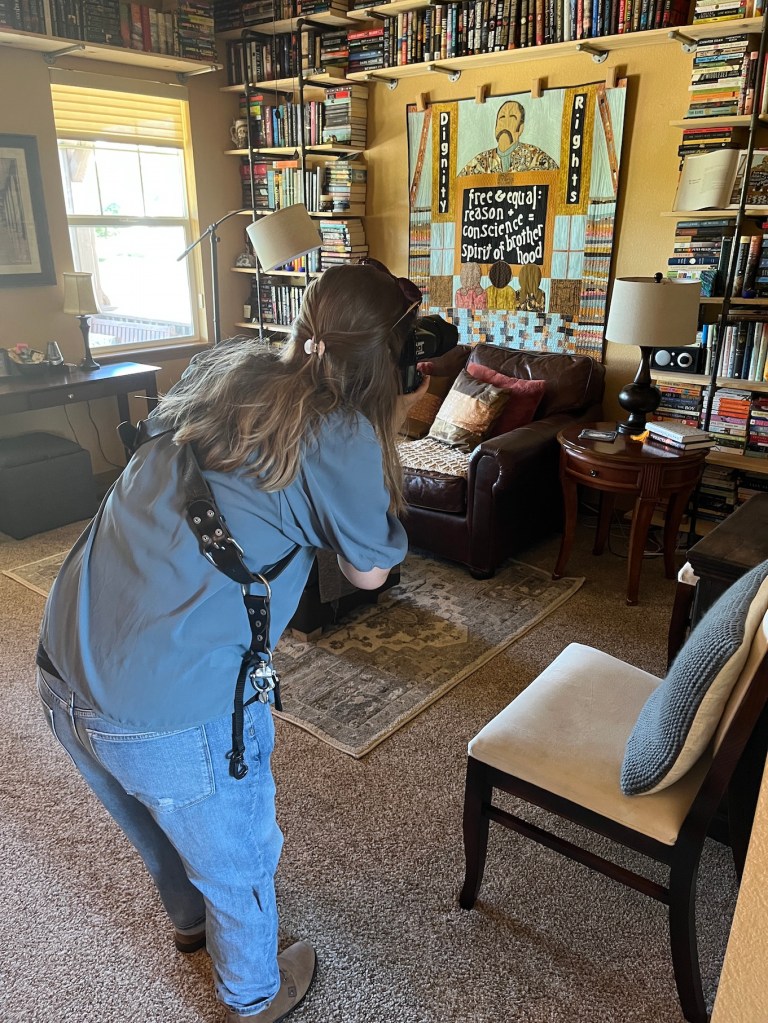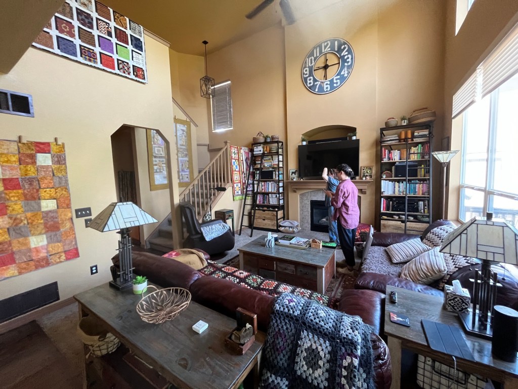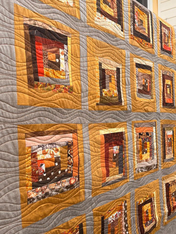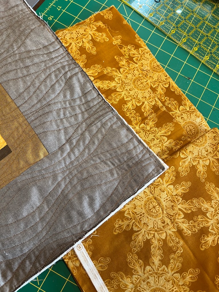 After searching several quilt shops, MJ and I found the perfect backing and binding fabric at one of our wonderful Central Oregon quilt shops. Then we had the quilt professionally longarm machine quilted.