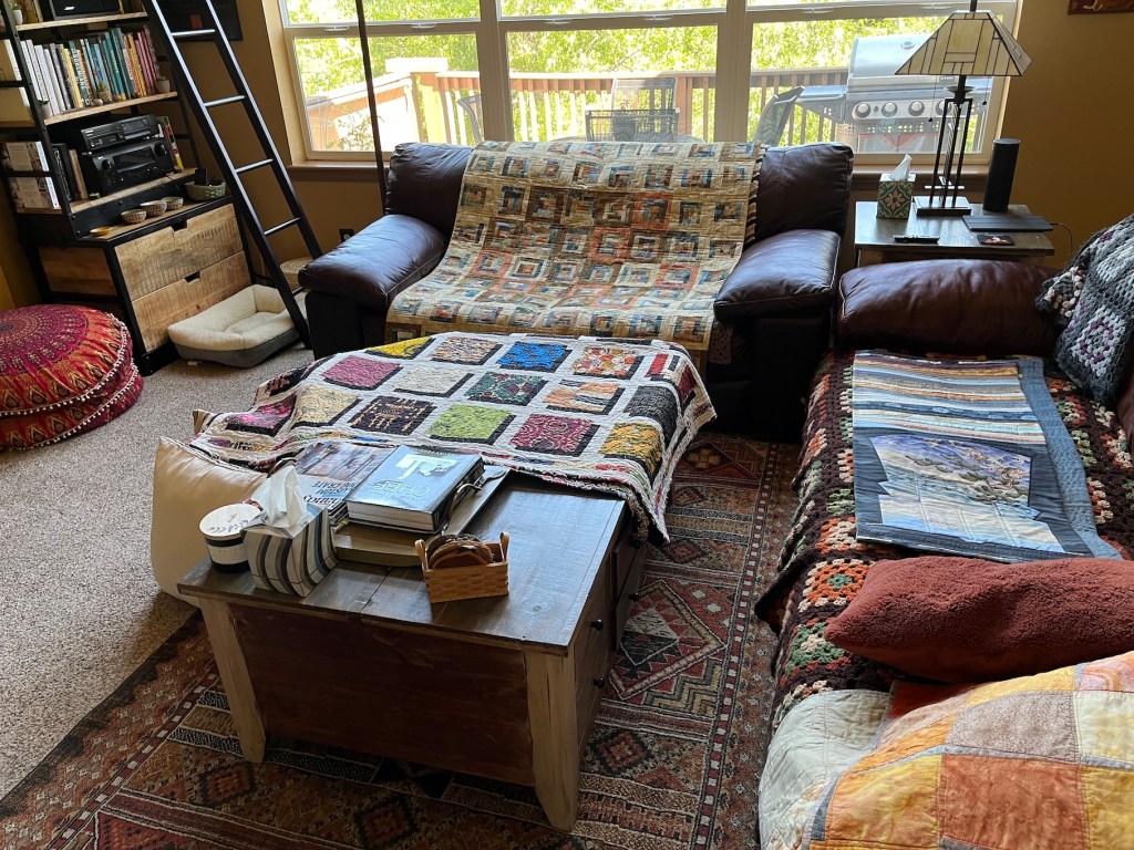 MJ’s Mom passed away in mid 80s and I am so glad she got to enjoy this quilt before she passed.