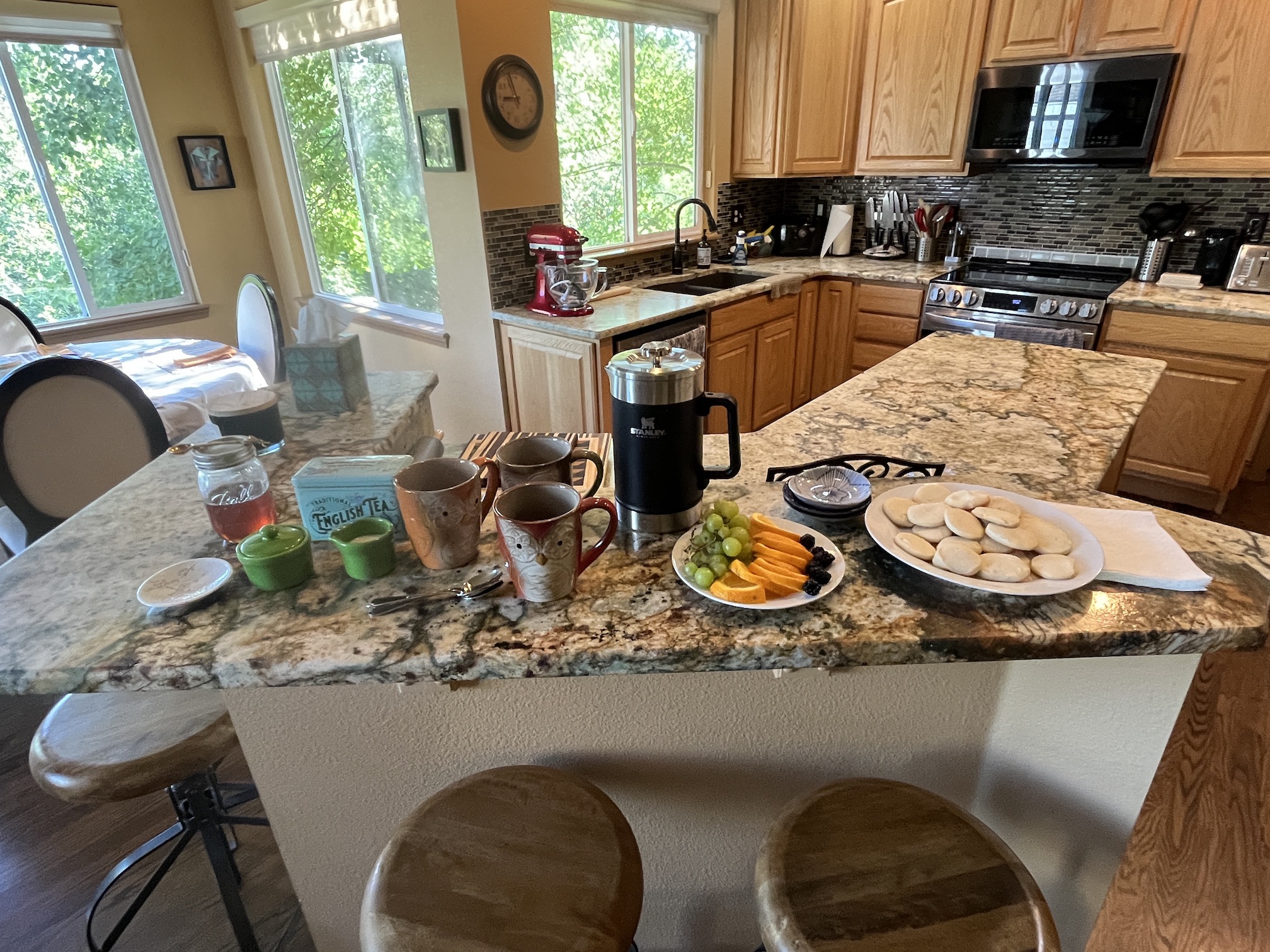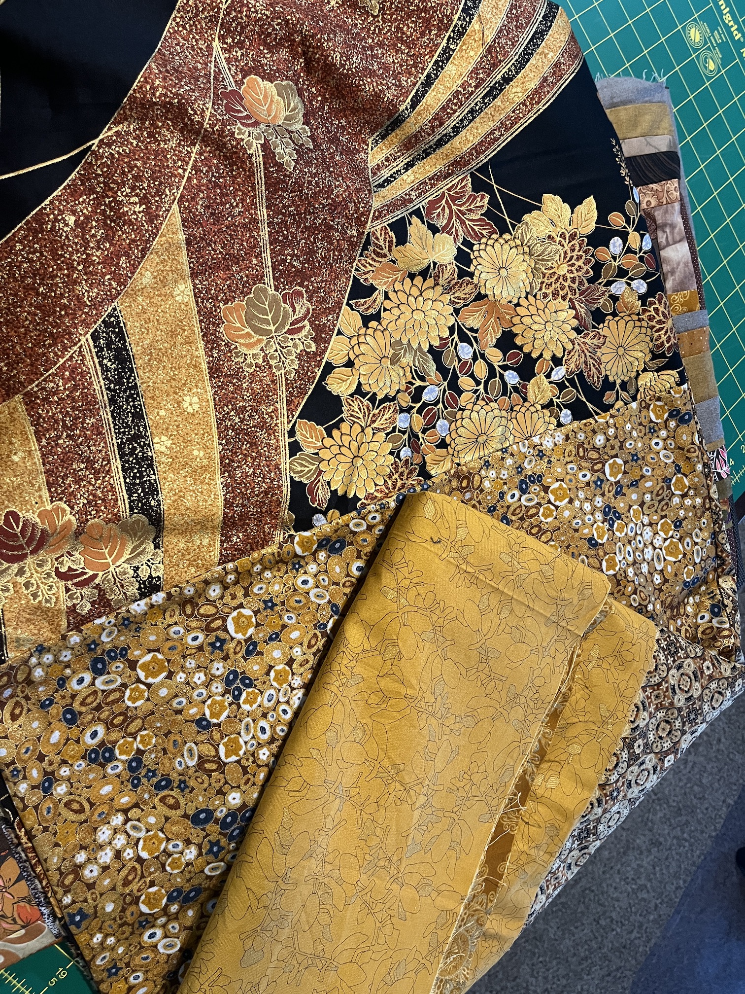After searching several quilt shops, MJ and I found the perfect backing and binding fabric at one of our wonderful Central Oregon quilt shops. Then we had the quilt professionally longarm machine quilted.