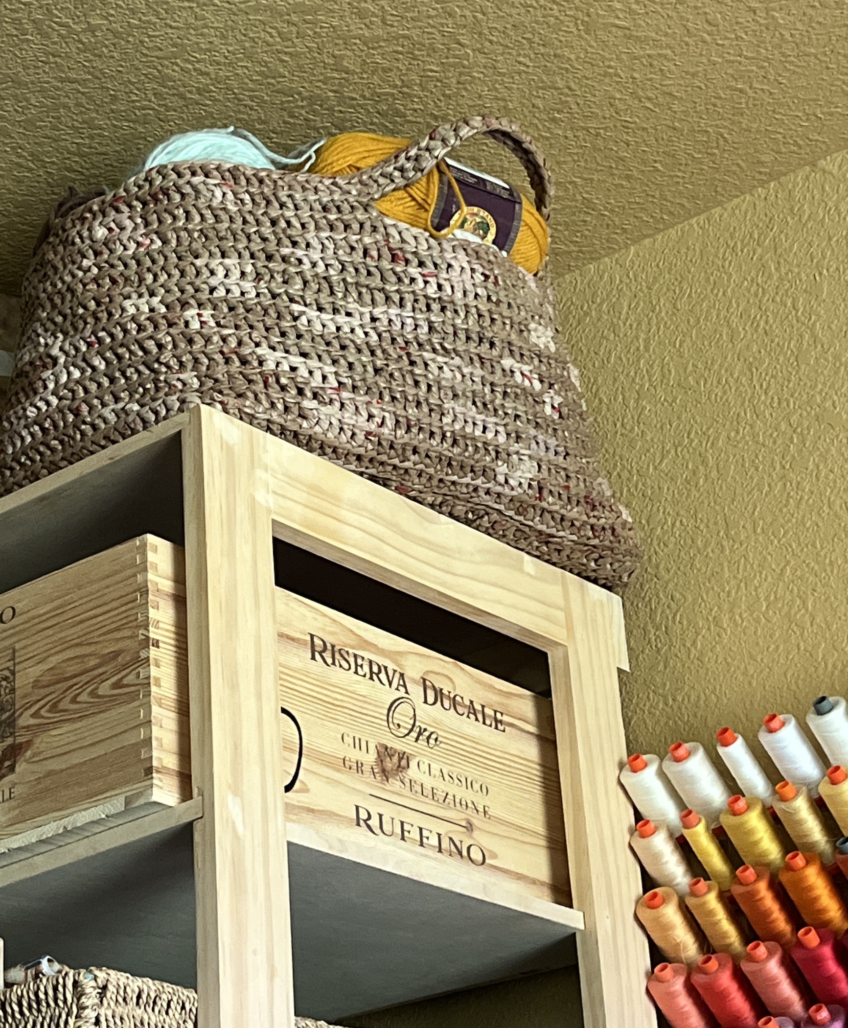 Oh and speaking of baskets, here is an amazing giant bag made out of recycled plastic grocery shopping bags my friend MJ brought me as a hostess gift when she came for the retreat. A friend of hers crochets them from her stash of grocery bags.