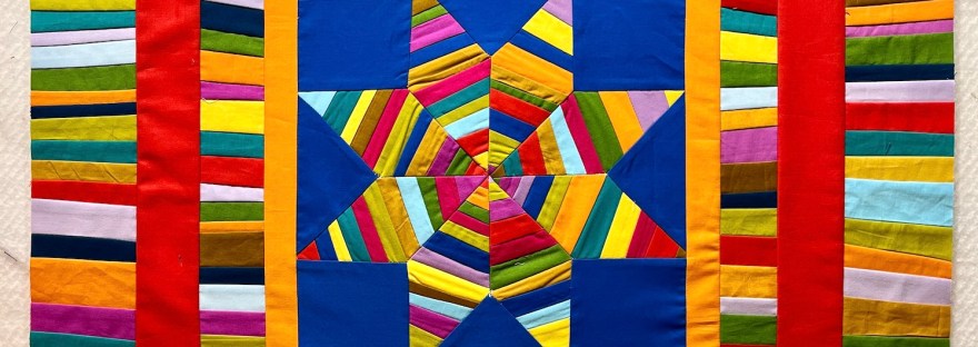 For September’s ScrapHappy post I am going to reveal my completed quilt top for the wall hanging Strings Attached, which I previously posted about in late August – Made Some Progress on “Strings Attached” .