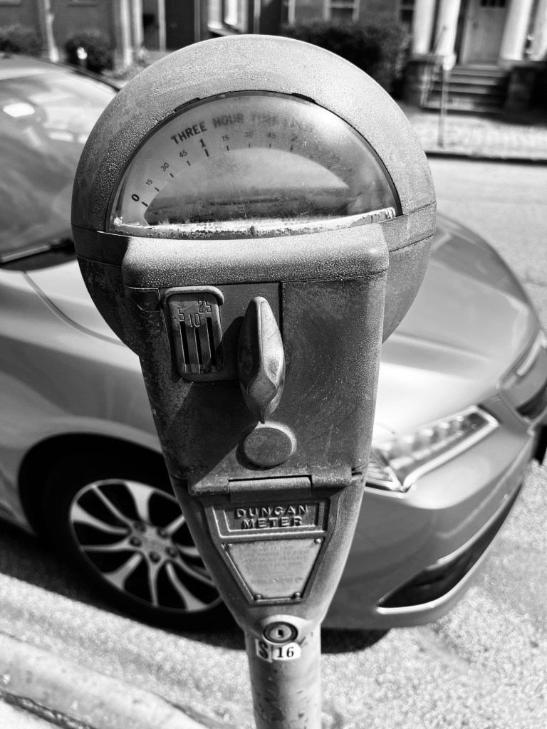 Downtown Saltsburg looked like a time capsule from the 1940s/1950s/1960s – here is the “old school” parking meter we put a quarter in (yes one quarter) to pay for our parking (I thought it needed of a B&W photo):