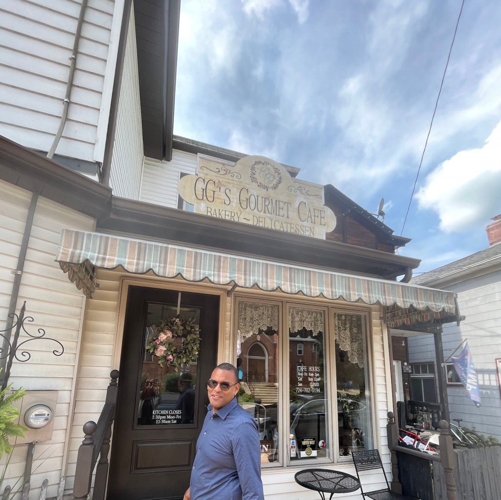 After a long day of road tripping, we stayed overnight in a hotel in Pittsburg, PA and then in the mid morning headed to Saltsburg, PA for the ribbon cutting ceremony. But first when we got to Saltsburg we had lunch at a delightful little cafe in downtown Saltsburg: