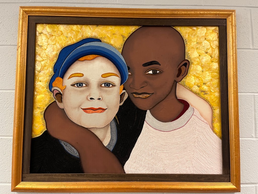 Inside the classroom was a slide presentation of photos from our father’s time at The Kiski School and the amazing art by the artist Yvonne Davis (no relation):