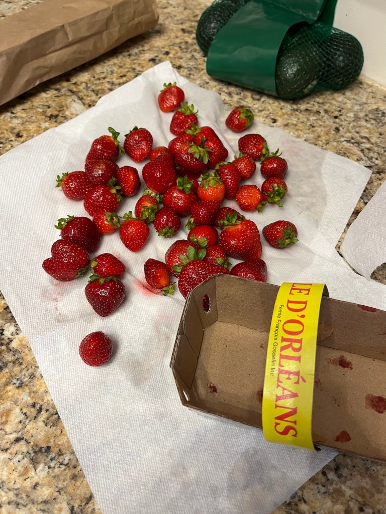 Every day we’d go to the local market place (Le BeauMarché) around the corner from our AirBNB and buy groceries, like these strawberries: