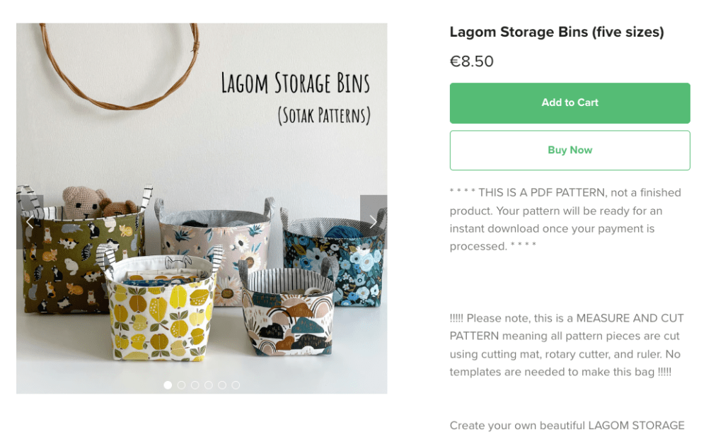 I have several of her patterns and I recently tried out the pattern Lagom Storage Bins: