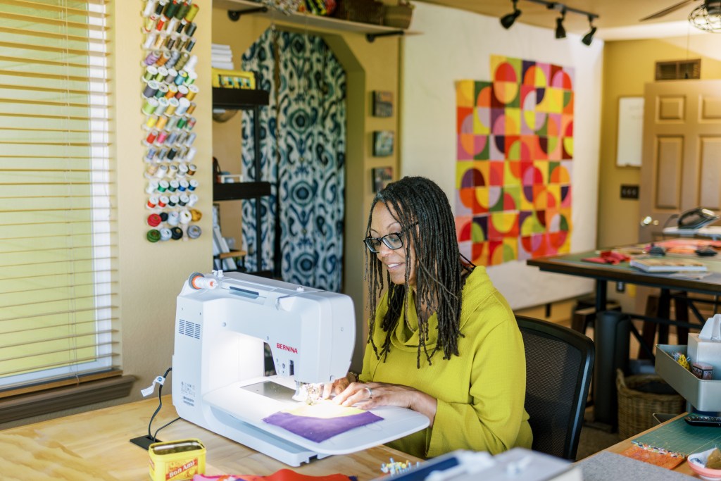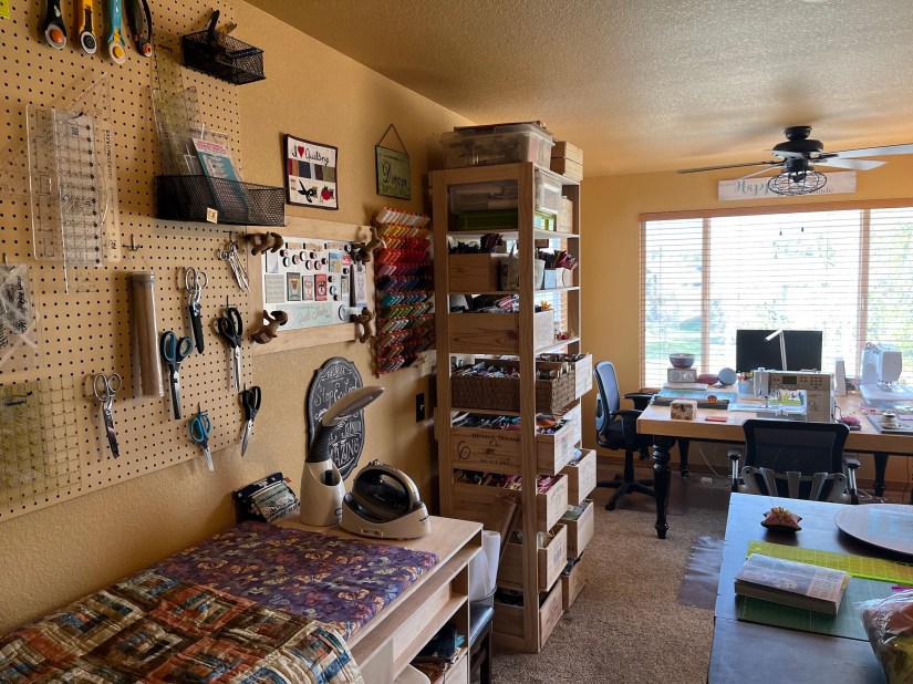 As far as my fabric stash, I’ve organized my entire stash to be on display in my studio so I can see exactly what I have and actually use it! No more fabric tucked away in a closet. I also did a HUGE fabric purge again and I am down to just what I am really going to use. I’ll do a post in the future about my new fabric storage and updated arrangement of my studio.