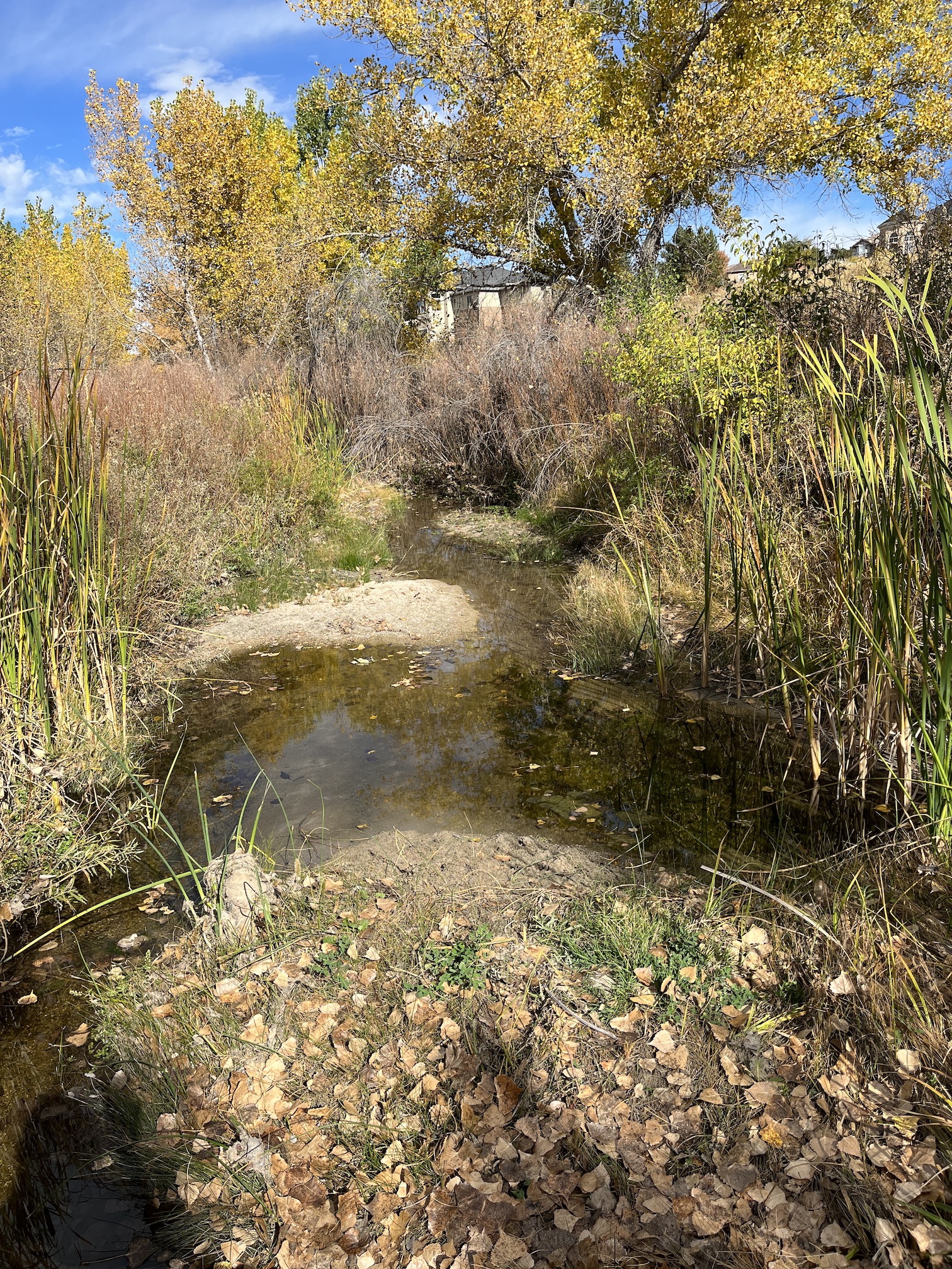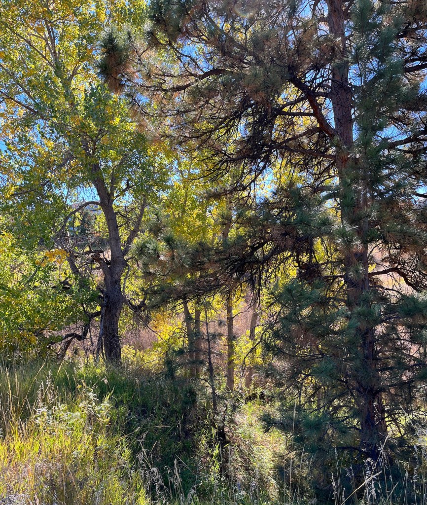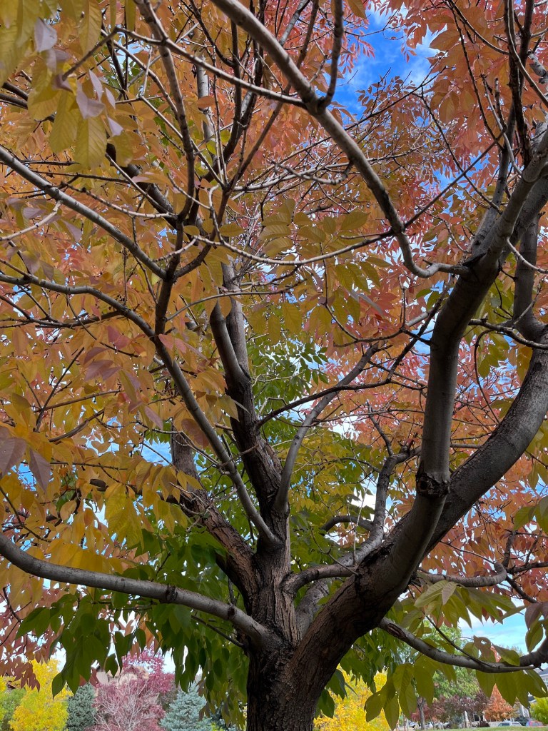 The deciduous trees are now changing color on my “nature walk” and I took some recent photos: