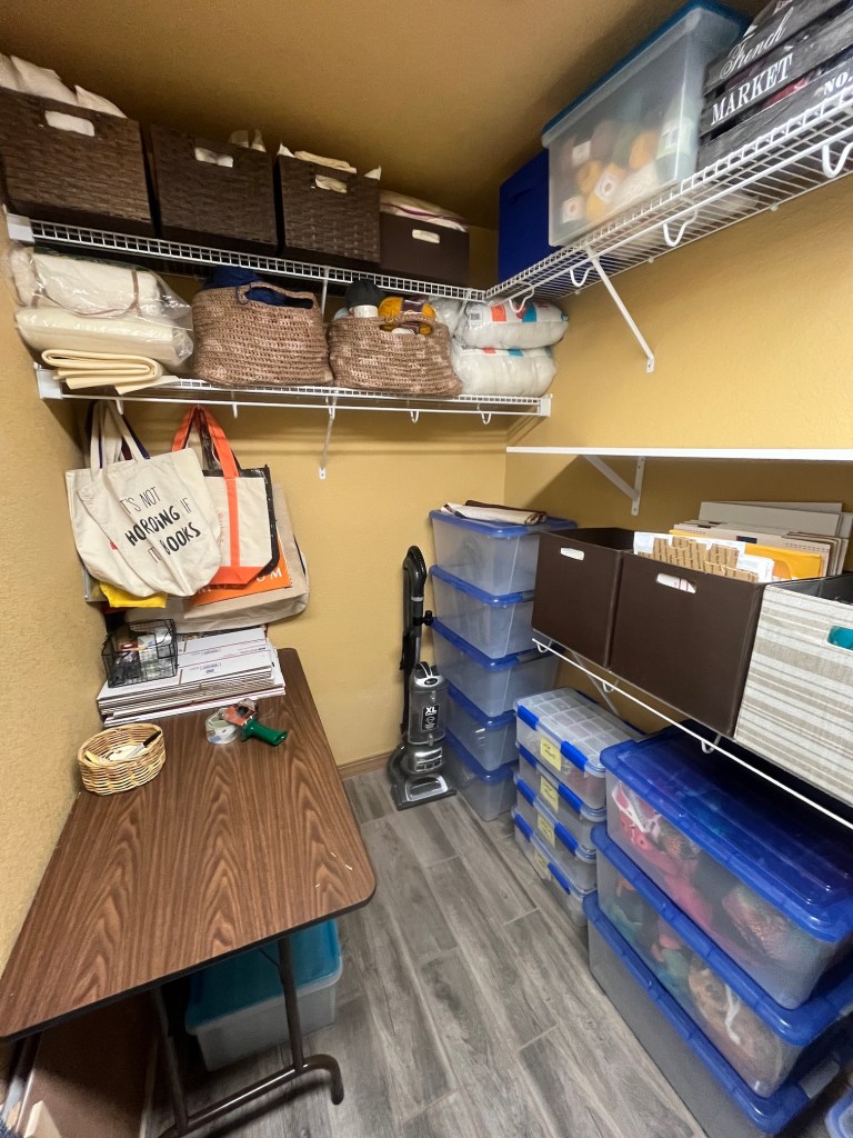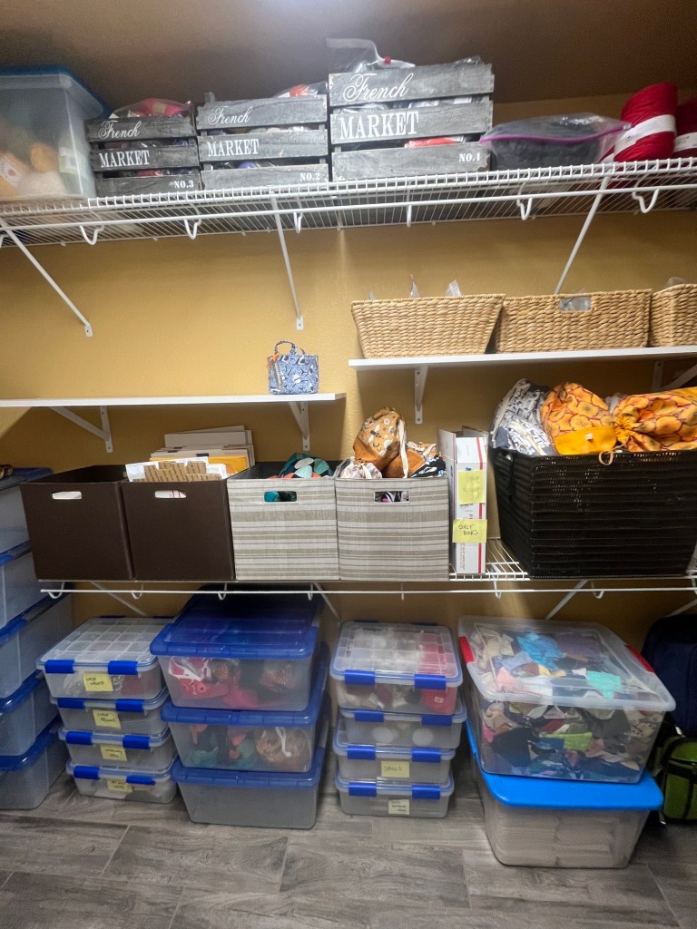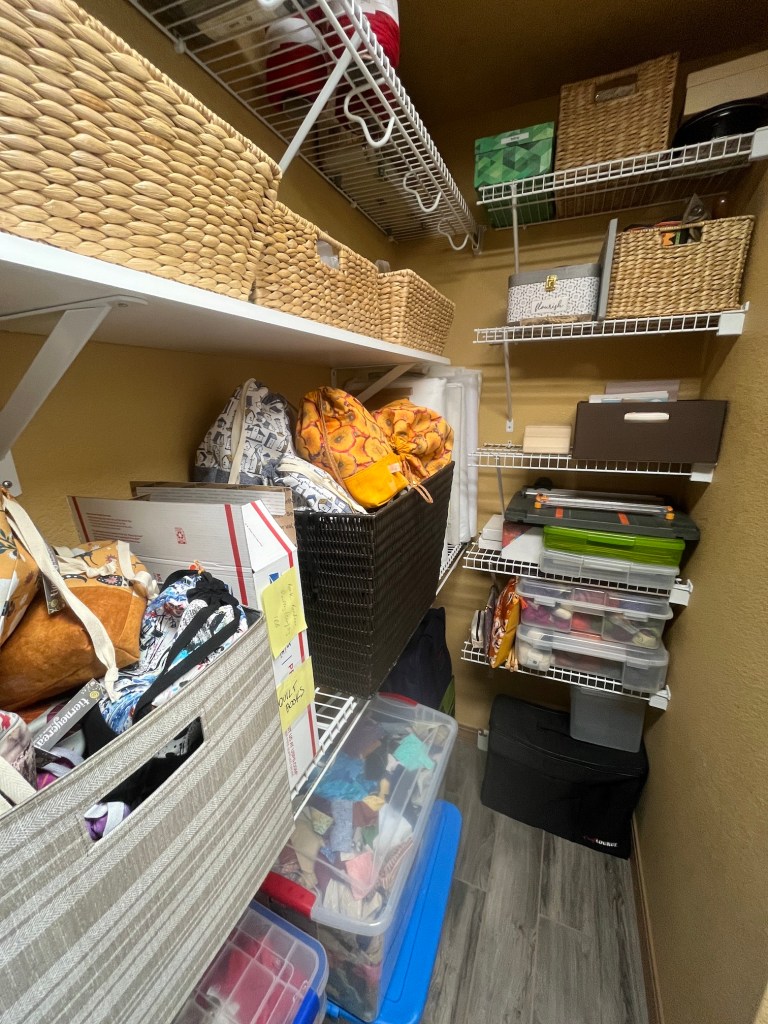 Here is my new studio storage in the Big Closet (and yes I have to walk through the master bathroom to get to it, but it is totally worth it to me):
