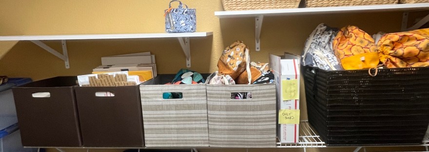 I’ve been working on getting my Etsy shop restocked (I even have 4 listings now up on my Textiles & Smiles Etsy Shop) and this closet gives me plenty of room to organize my items for sale as well as my crafting materials.