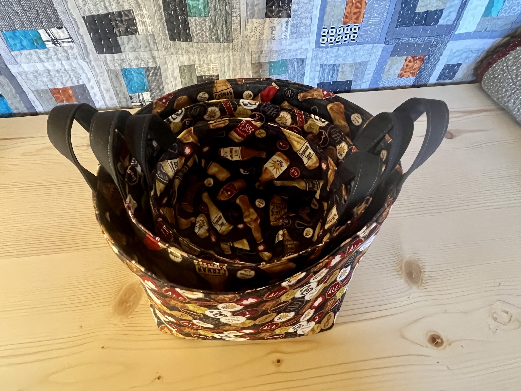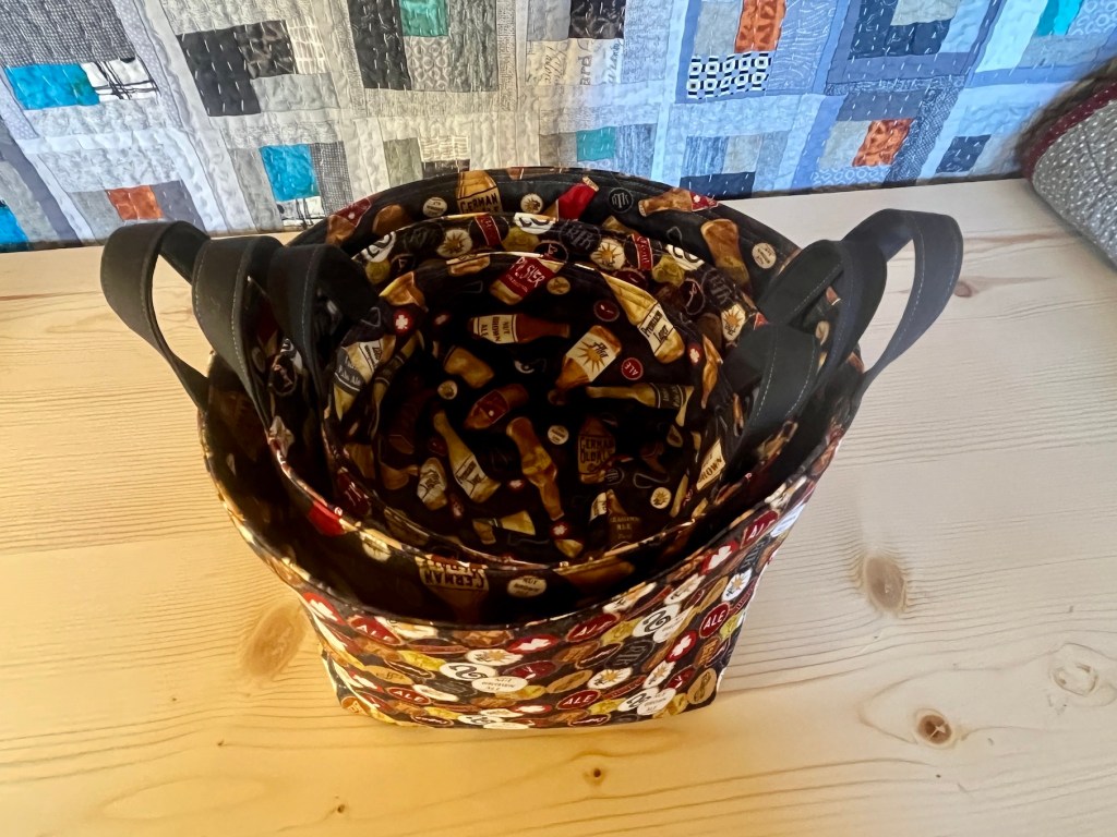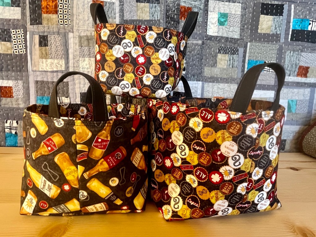 I store them in this bucket bag I made a couple years ago, as I complete them: