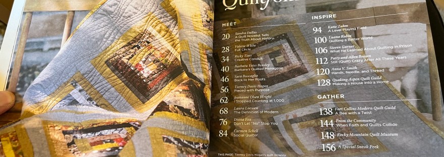 I recently got permission from the Editor in Chief of Quiitfolk Magazine to share the image of a page from Issue 28: Colorado that really surprised me (see blog category Quiltfolk Issue 28 for the whole story/all the related posts,if you are just joining us) when I opened the issue for the first time.