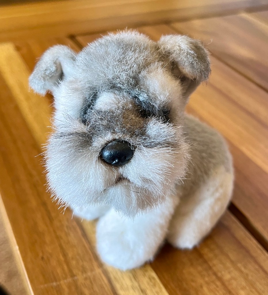 One of the stuffed animals I kept is a very realistic 5 inch (12.7 cm) schnauzer that I keep on my desk in the upstairs guest bedroom: