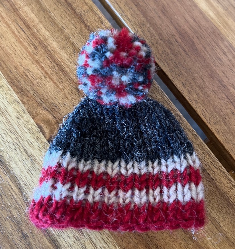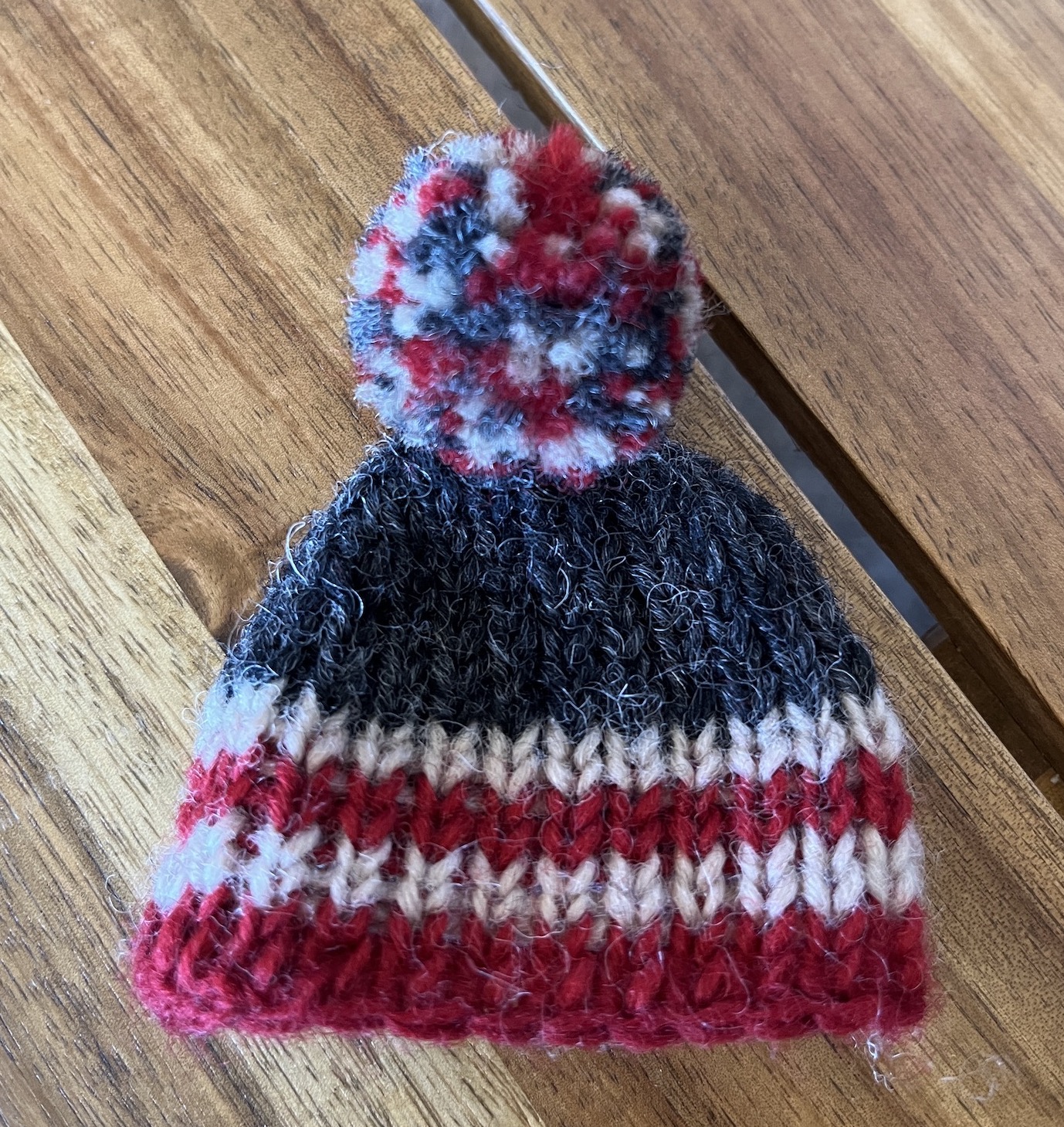 Recently I rediscovered stashed amount pens in my studio, this little 3 inch (7.6 cm) knitted hat (include the pom-pom) I picked up from the gift shop at the Cliffs of Moher (see my post The Cliffs of Moher) while visiting Ireland in 2022. It was a key chain but removed the key chain hardware to make it into just a little hat!