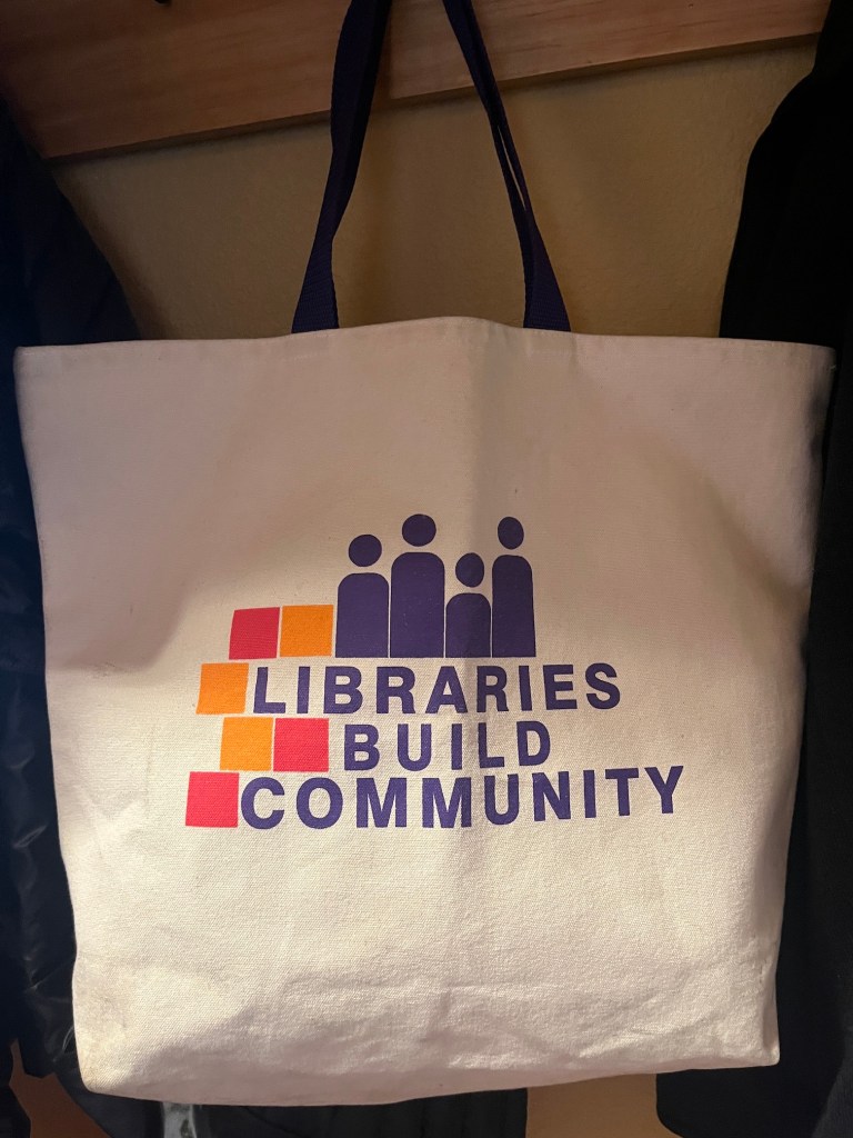 Oh and speaking bags, I don’t think I’ve shared this lovely tote bag I found while thrifting that I love to take everywhere, especially to the public library to pick up my holds!