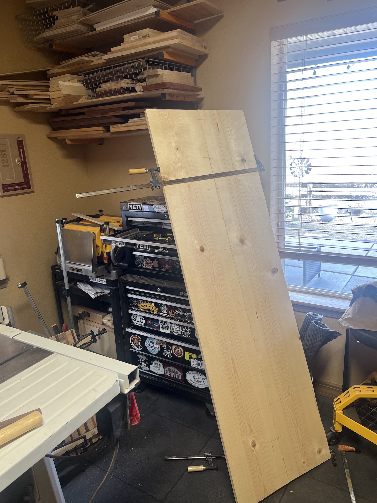 He laminated the top of the Outfeed Table to make it easier for the wood to glide on it. It was his first time laminating and it seemed a little scary but we watched YouTube videos together (I provided moral support) and it was easier than he thought it would be!