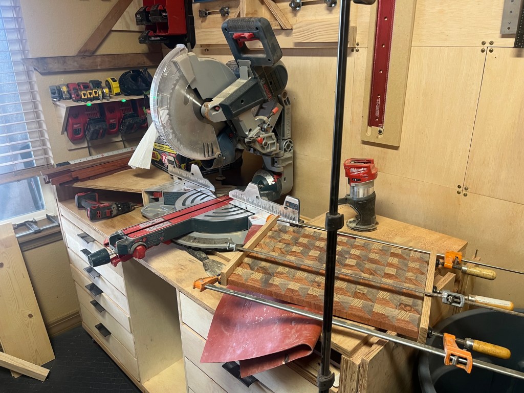 Speaking of the “woodshop in use”, John has been teaching his eldest son to woodwork starting with making cutting boards. They get together once to twice a week afterwork and on Sunday afternoons. They’ve made a lot of cutting boards so far including a 3D cutting board.