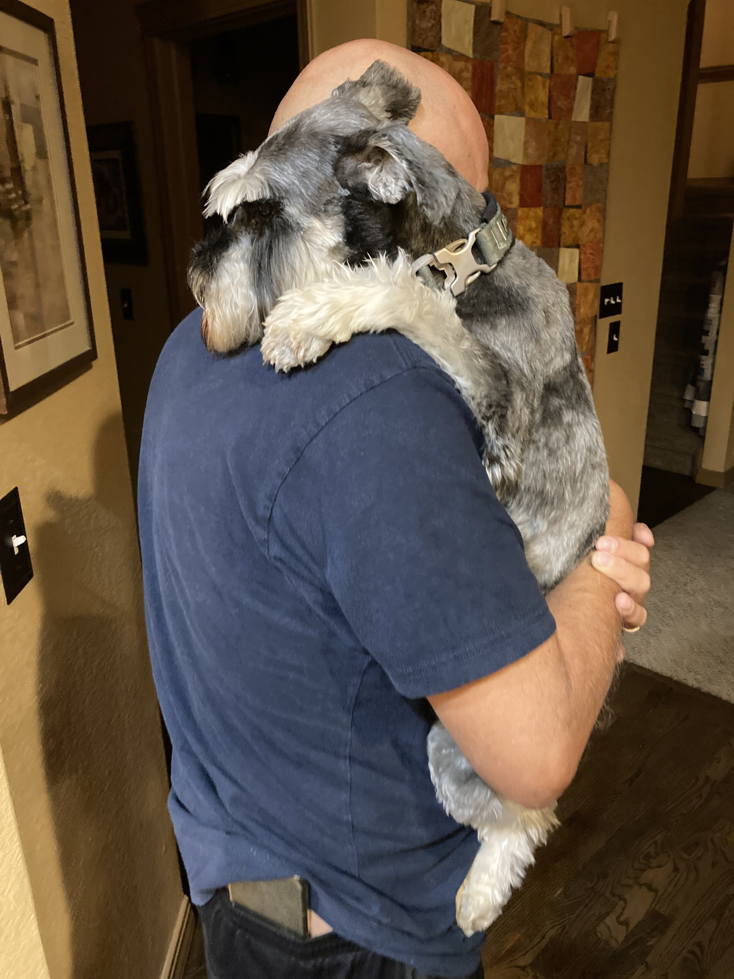 One of the very sad things that happened when my husband Terry died was that he passed suddenly at home while alone with our dog Mike the Miniature Schnauzer. Mike had to be with Terry’s body for a couple hours before I came home to discover him.