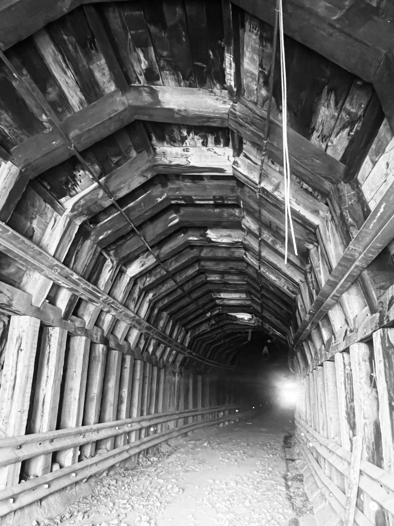 We came across and old abandoned under the mountain passage that we think was once used for gold mining since we were in historic gold mining country: