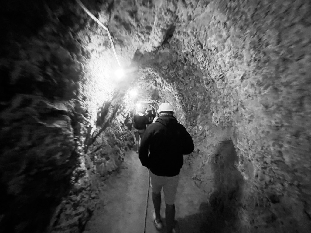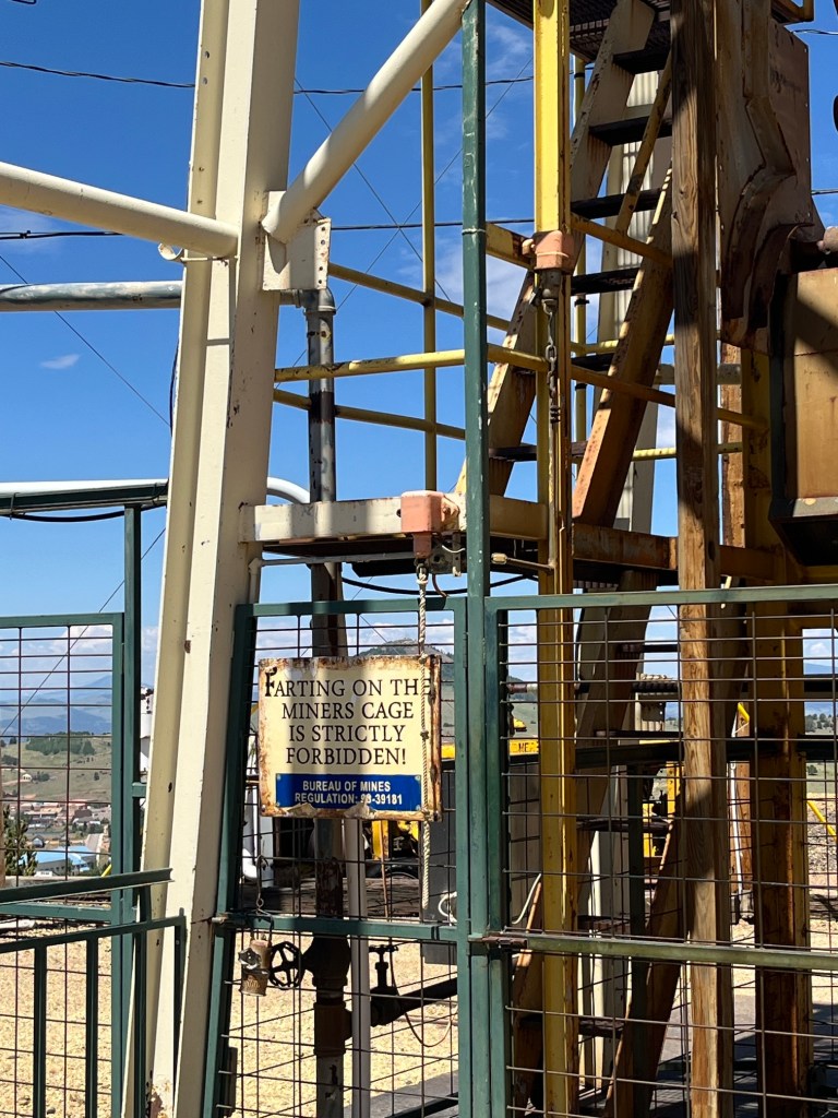 We had a blast during the tour and the tour guide demonstrated some of the historic equipment that miners used in the 19th and 20th centuries to mine for gold. We only went down to 1000 feet underground but our understanding from the tour was the full gold mine goes to 3000 feet+ down under ground! Here are a couple more photos from the tour including the awful “restroom” that miners had to use of a bucket that got emptied out by the children that worked in the mine for 50 cents a day; and the large bucket that was used to transport miners up and down the mine!