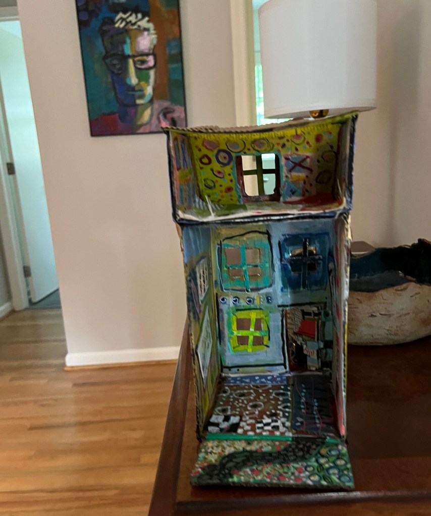 And as a nearly overwhelming surprise, Claudia gave me one of her Tiny Houses art pieces that she made for me! Below are photos that do not do the piece justice. She will have a future blog post with much better photos about this house: