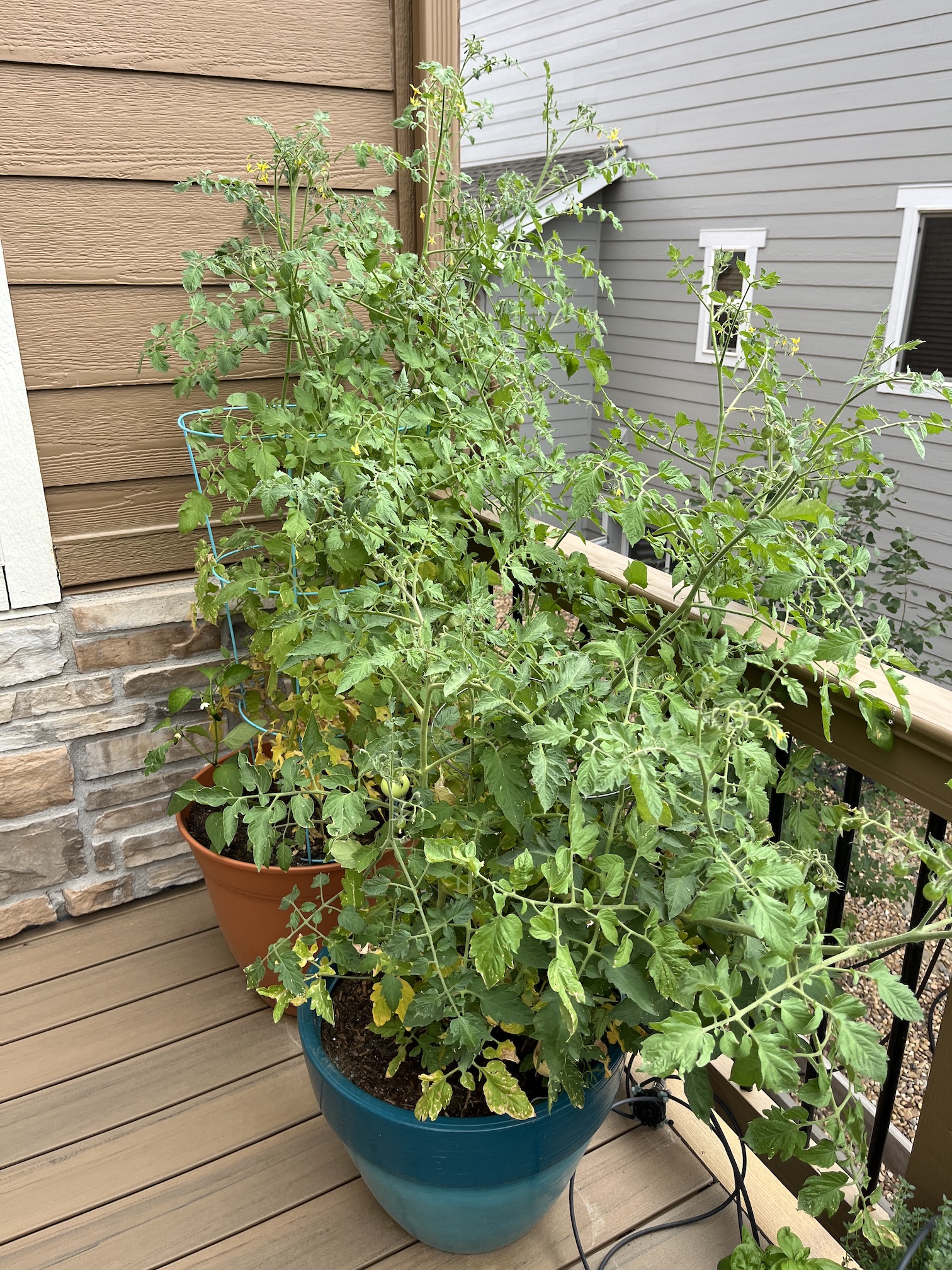 I am on my 4th summer of growing tomatoes on my upstairs deck in Colorado. This year my tomato plants have GONE WILD and are the biggest they’ve ever been! I didn’t do anything different this season than previous seasons but the tomato plants are growing like crazy.