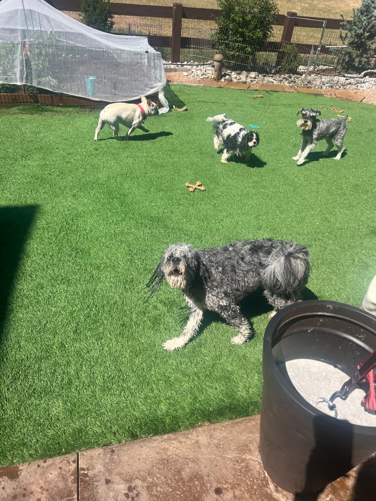 Mike was at “Dog Camp” while we were traveling and here is a photo of him with his friends playing: