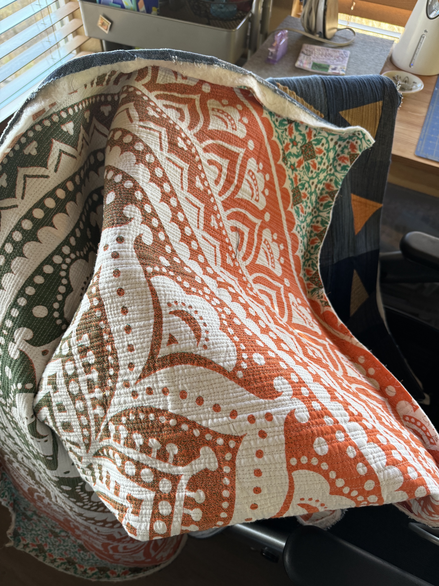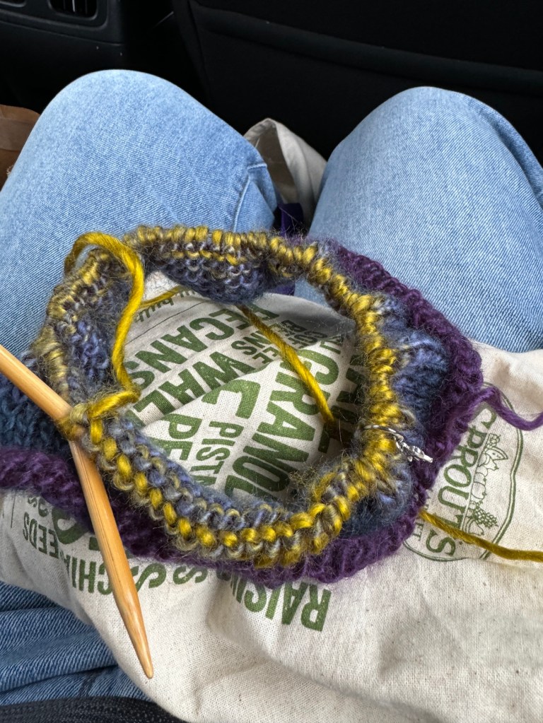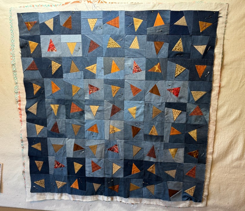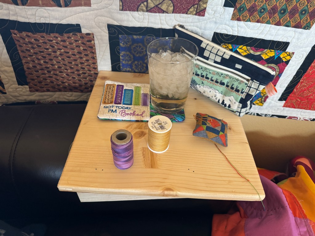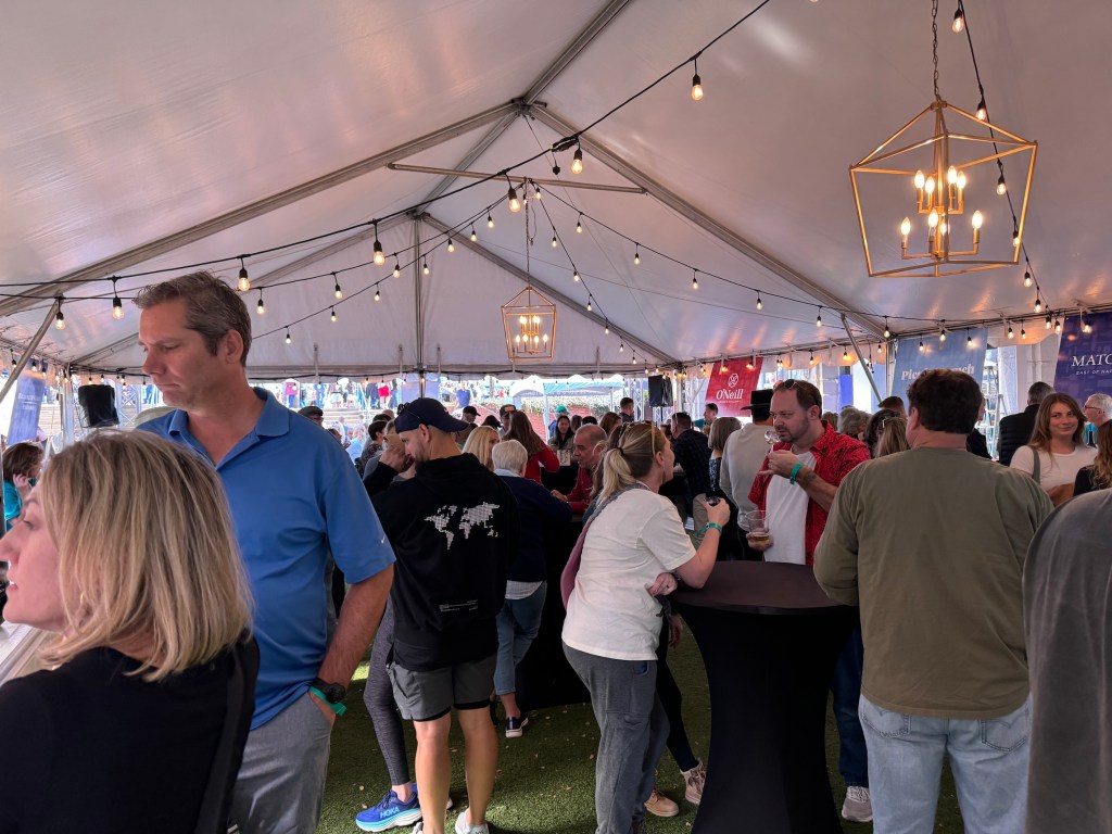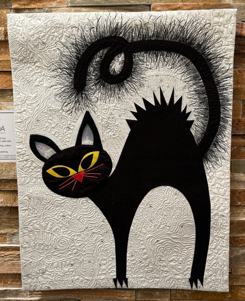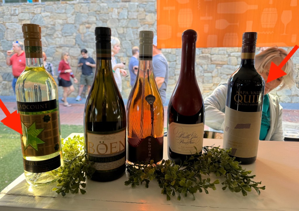 We attended a wine tasting festival inside the festival (yes they had “festivals” inside the main festivals including a craft beer festival) and we even discovered some wine with quilting themed labels (photo is difficult to see but I put in arrows).
