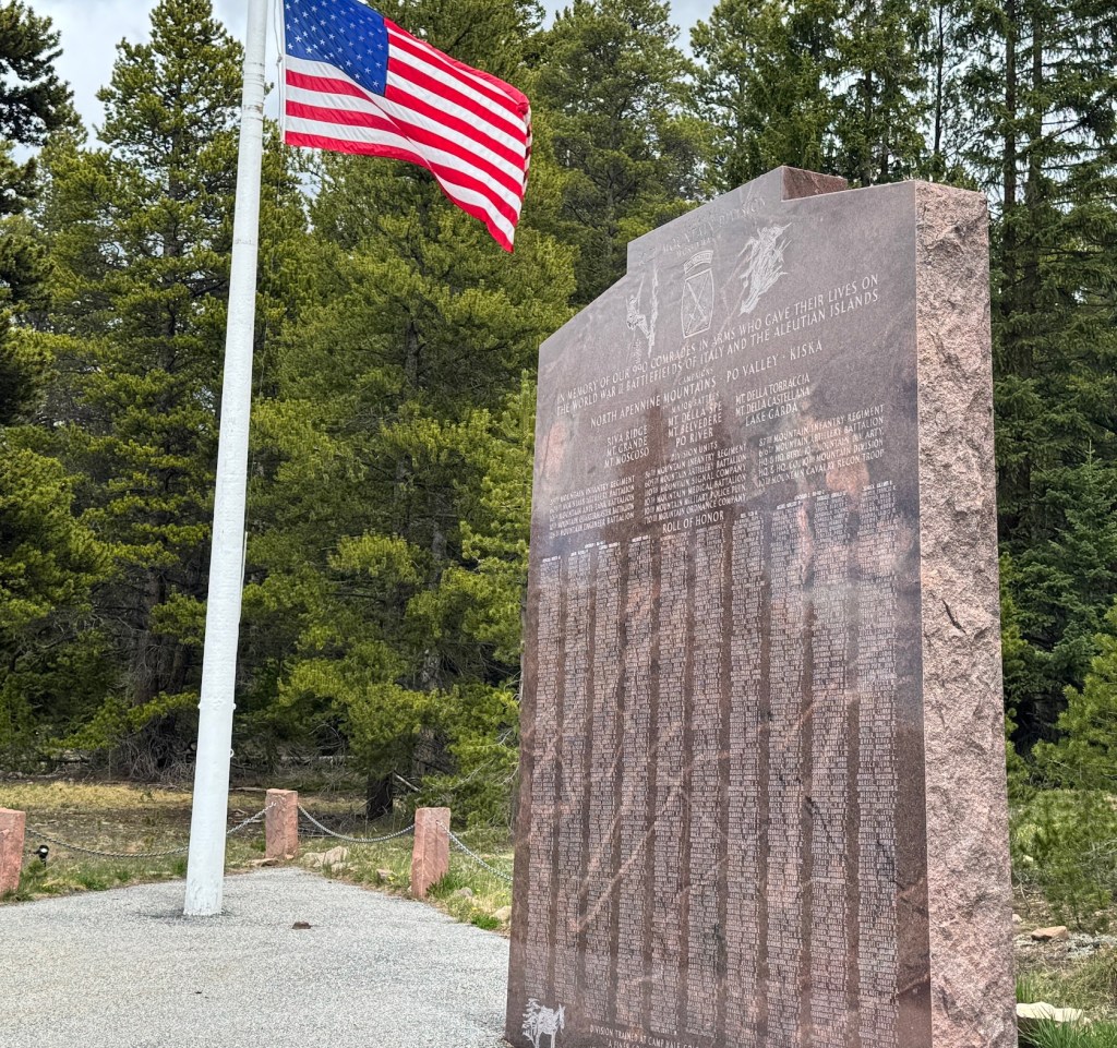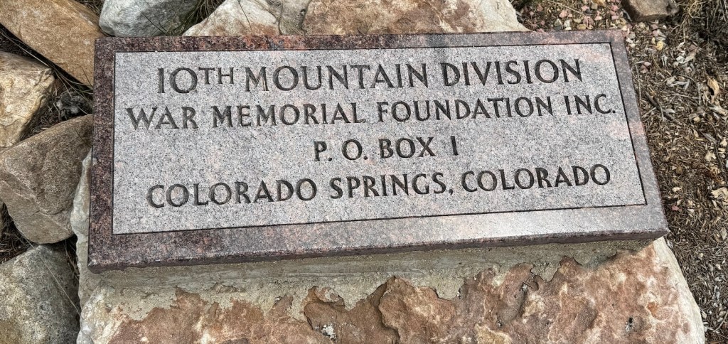 So when John and stopped at the memorial on our way to Leadville I was completely emotionally overwhelmed. Not only because of the memories of discussing the 10th Mountain Division for years with Terry; but because I knew Terry would have so loved to see the memorial. It would have made him very happy and moved him deeply.
