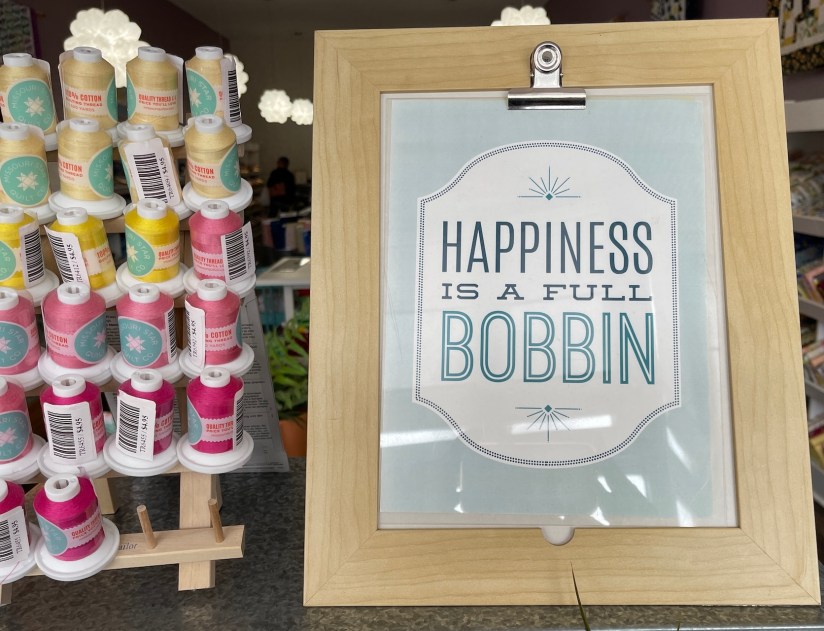 1. Hi Tierney, this post was fun and while I do not sew all of the time, I have made curtains, costumes and other little things – and so my favorite image shared was “happiness is a full bobbin” – hahah – so we can keep on sewin’