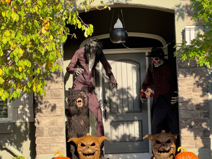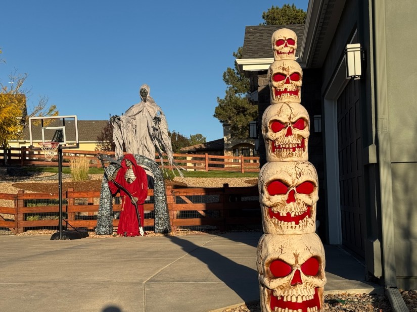 My grandson and I were pressing all the animated Halloween AND Christmas display buttons at Lowe’s the other day and one Halloween one had music and the jaw moved to sing to it. Well, at the end the head popped up with a loud click that startled us both I almost lost it. Cohen jumped up and back a good foot into me for safety. He said HE almost peed his pants the poor 5yo.! The darling couple across from us must have known what was coming as they waited and giggled giving me a “he’s so adorable “ look they enjoyed.