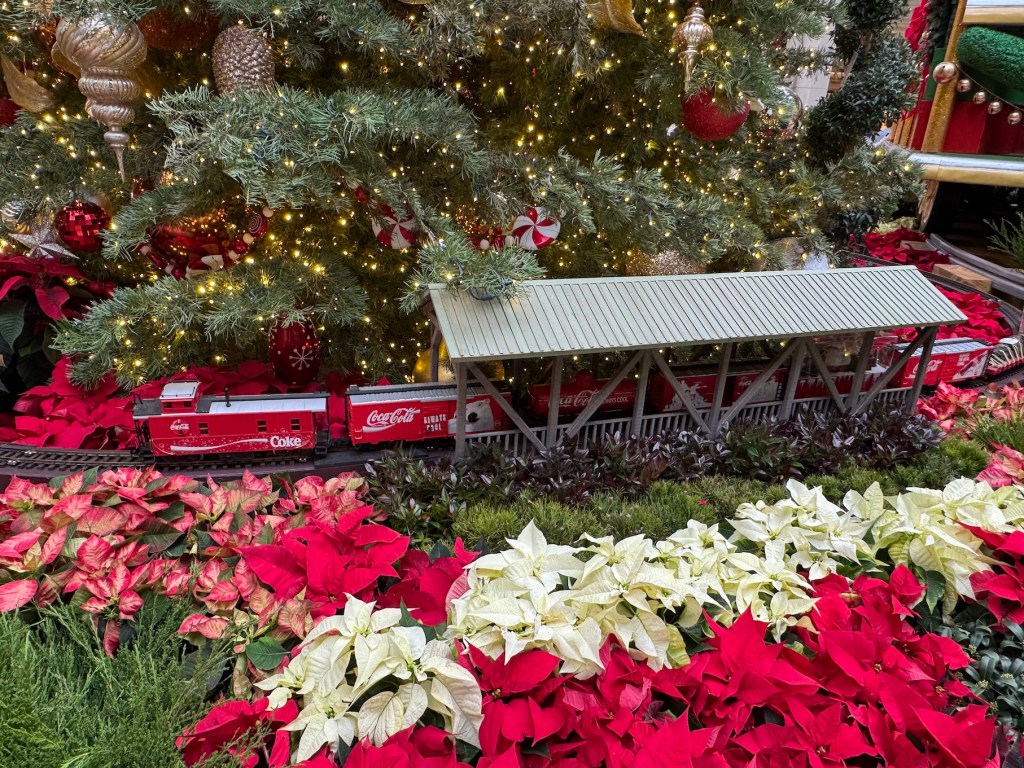 I got a kick out of the miniature train set circling one of the Christmas trees on display. It reminded of the electric train set we got from my grandfather that always chugged around our Christmas tree when I was a kid.