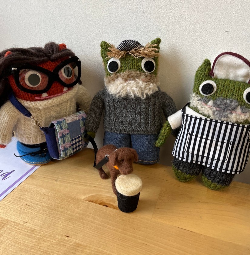 tierneycreates Beastie with Mattie Beastie (both wearing tiny cable knit sweaters by Helen) and John Beastie in Dublin, October 2022