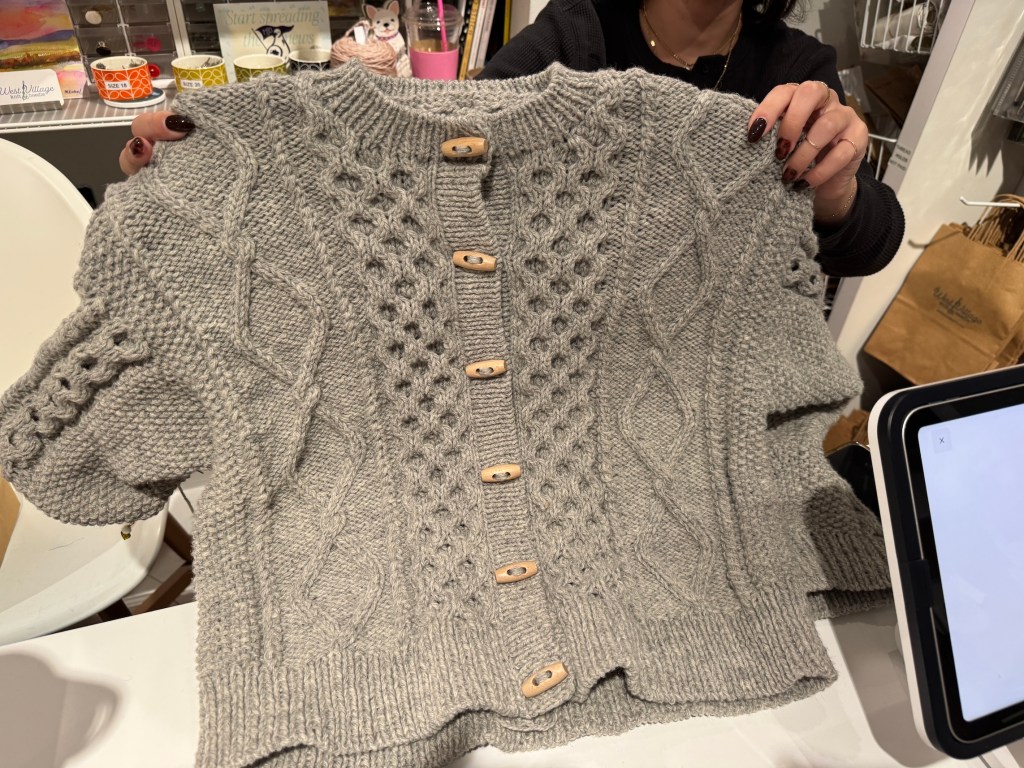 The staff was very friendly and one of them was working on an amazing cabled cardigan: