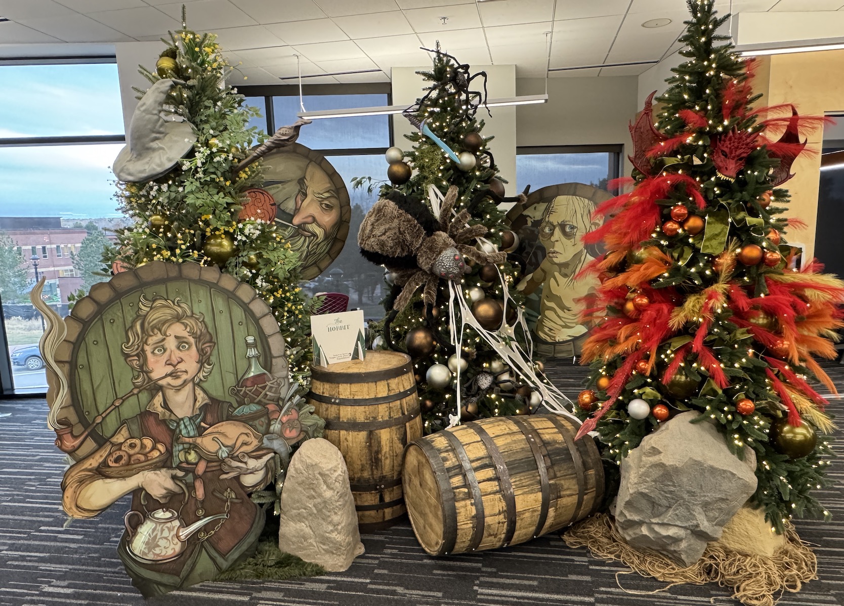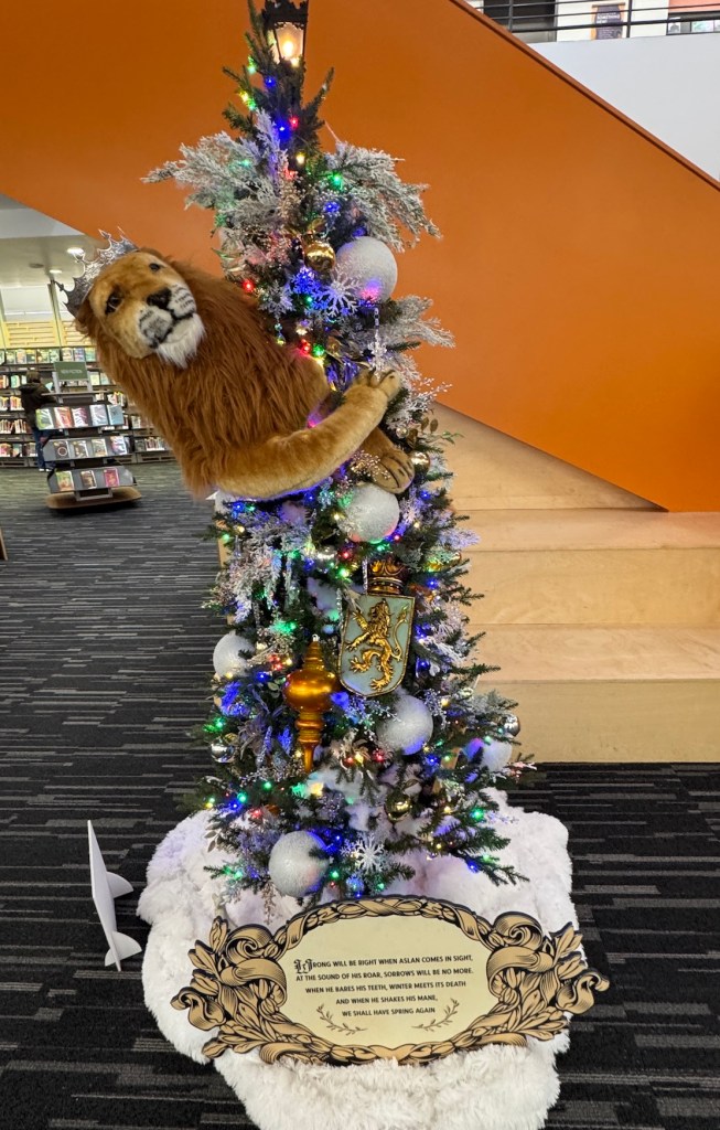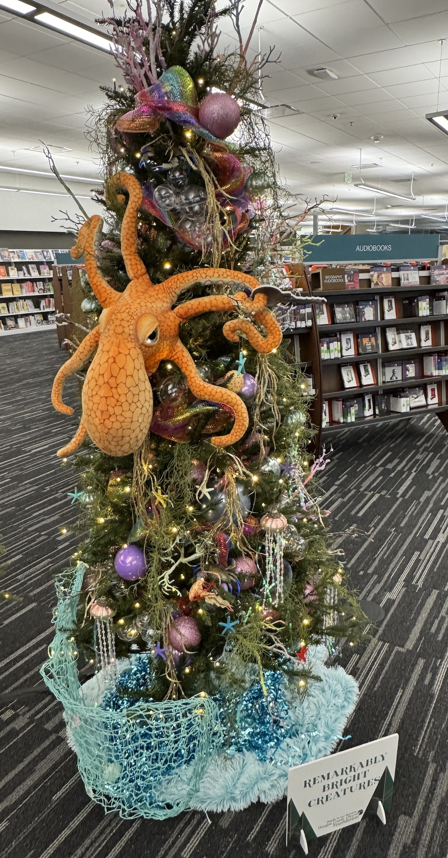 I thought I would continue my tradition of sharing some of the themed Christmas trees one of my local libraries displays each year. They are decorated by the library staff and you can tell they have fun decorating them each year!