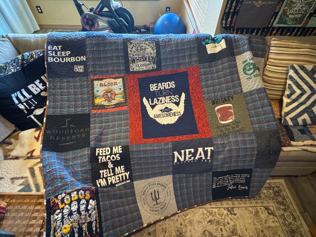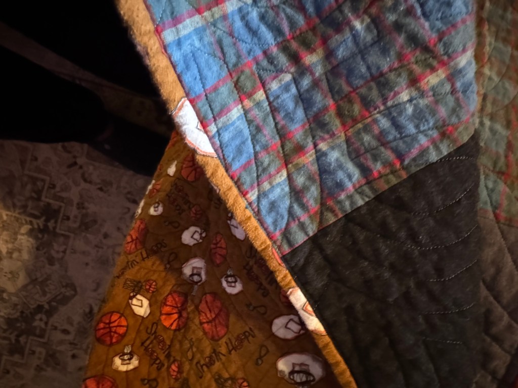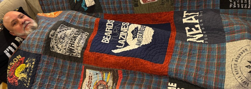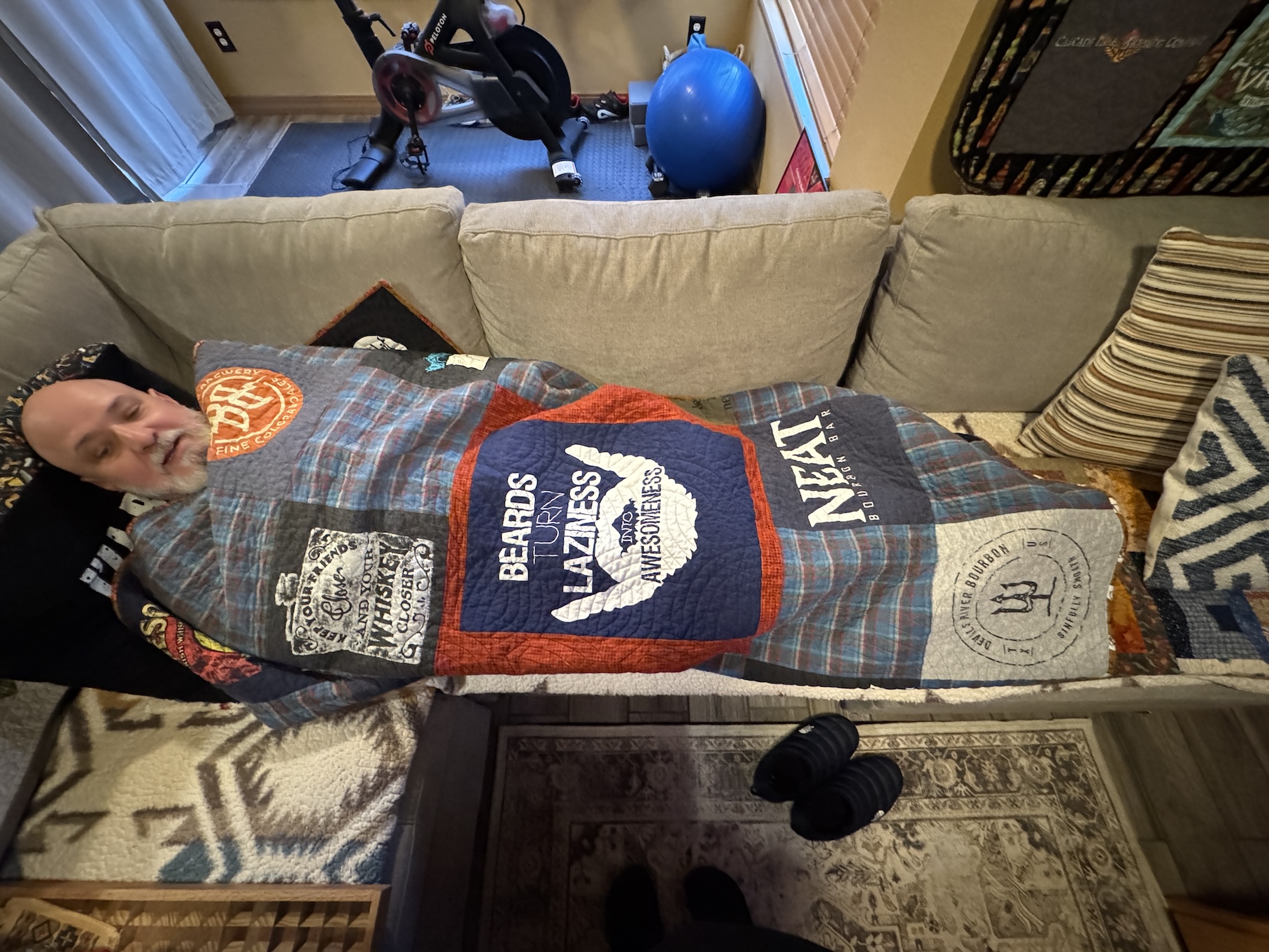 Here is John snuggled in the quilt this evening while we watch a movie!
