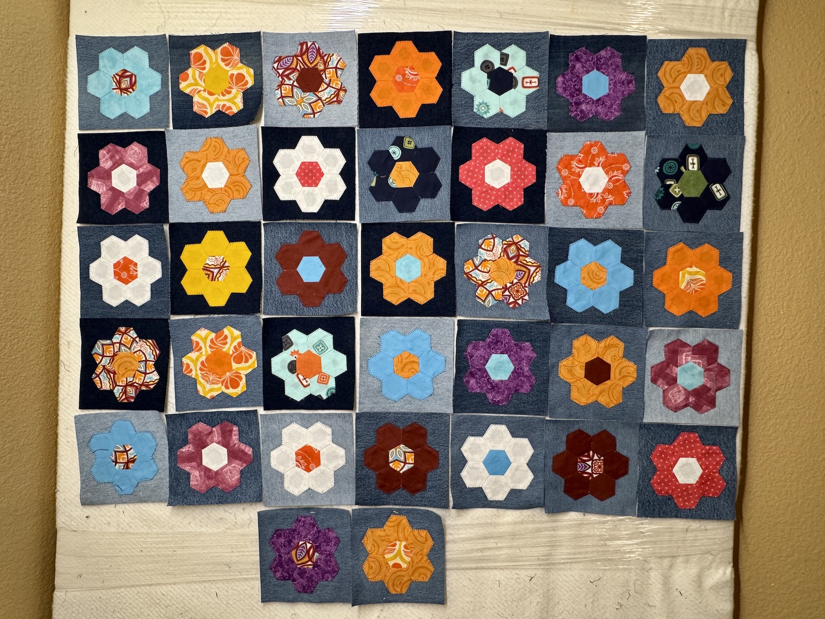 Only 62 more blocks to make of the 99 EPP flowers I’ve created.