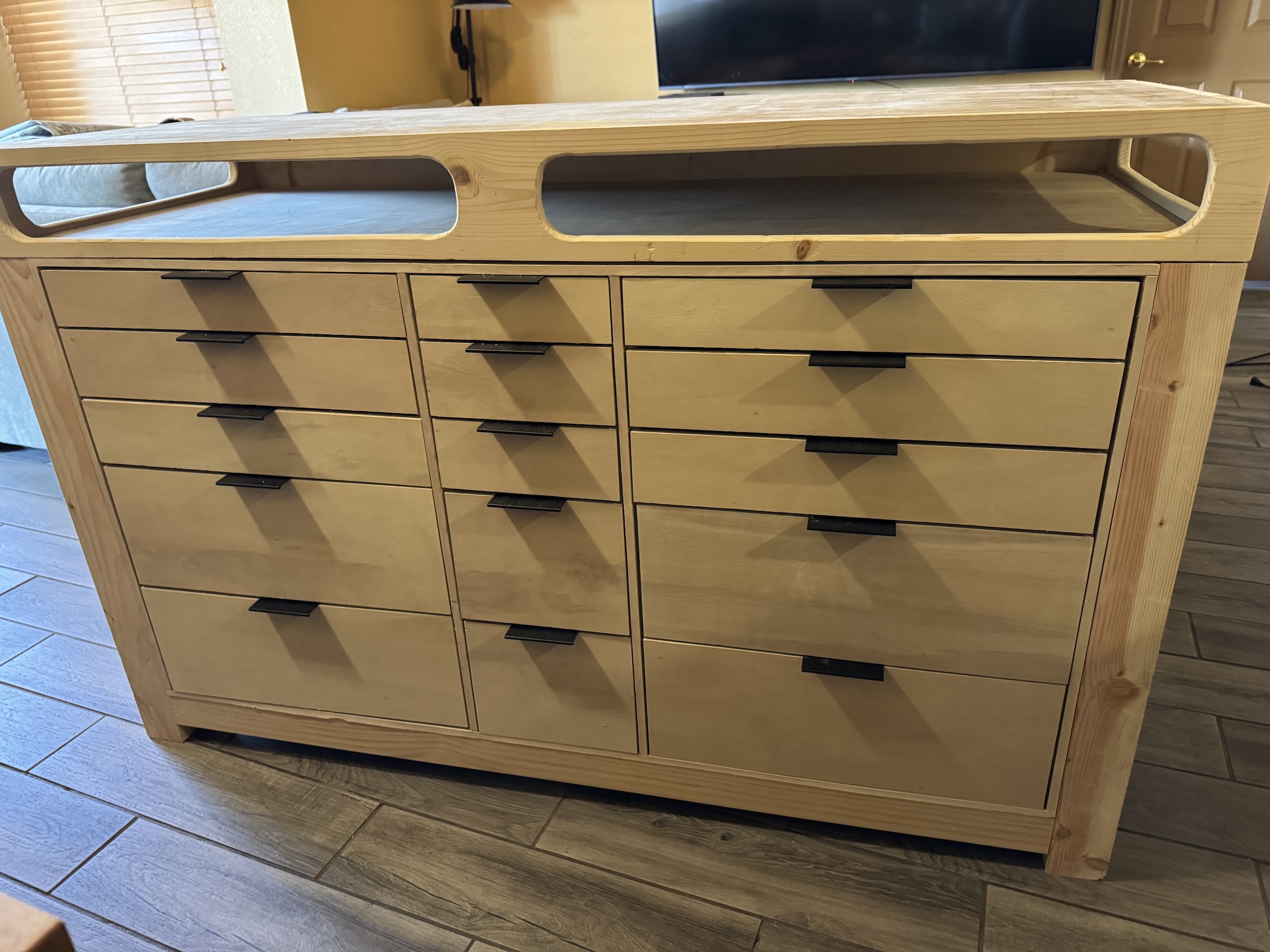 For years I had this piece in studio that John made me that I used as an ironing table and storage: