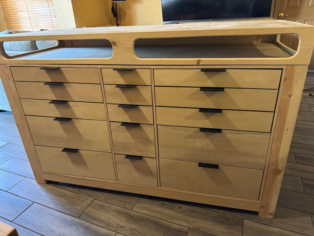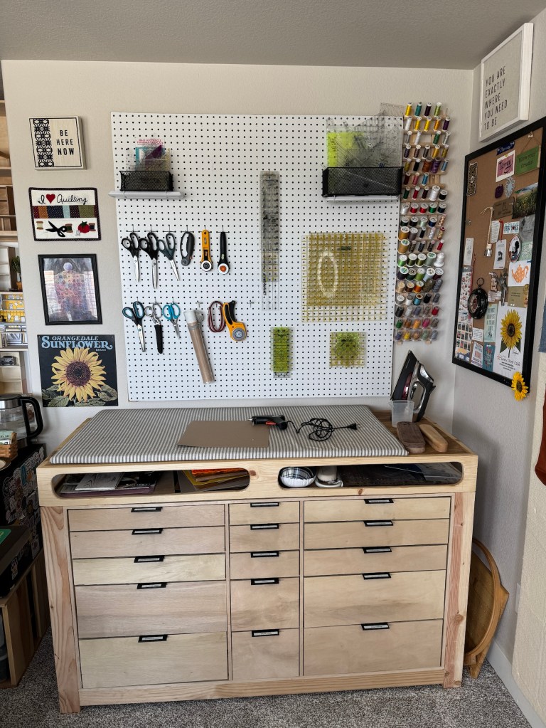 I have a new piece of storage furniture in my studio – a new Ironing Table/Storage Organization Unit.