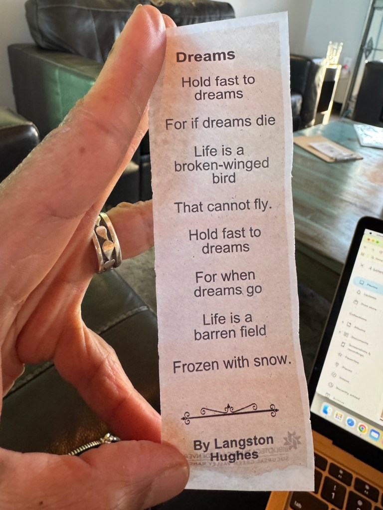 How amazing and meaningful to me because I created a Langston Hughes quilt for the show Black Pioneers: Legacy in the American West.