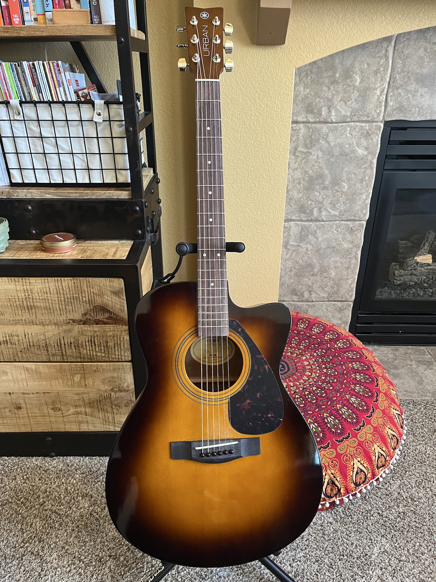 For the past year he’s been talking about wanting to pick up the guitar again, but hasn’t bought a guitar. I found a guitar at Costco (some of you might be cringing, ha, but it is at least a Yamaha guitar) – a Keith Urban guitar with lessons included, and convinced John we should buy it.