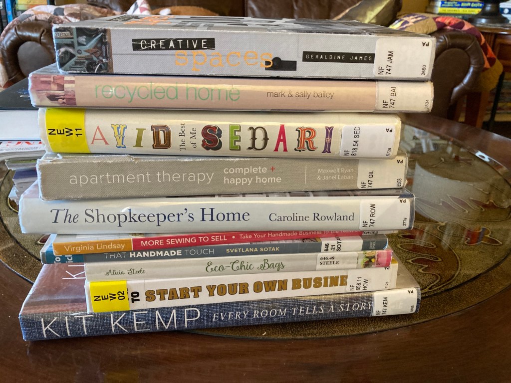 You might have noticed that I have The Shopkeeper’s Home by Caroline Rowland in two different stacks – if I really enjoy a home decor or crafting book I just borrow it again and again!