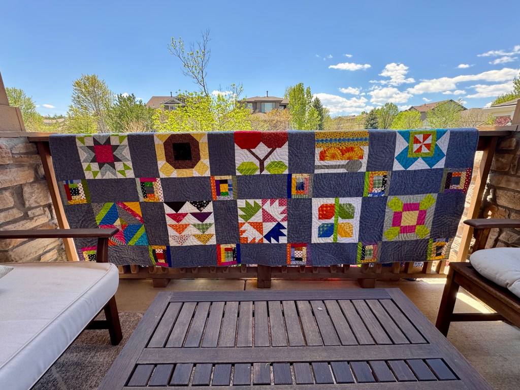 But the blocks got put away to gather dust (because I didn’t know what I would do with such a quilt that didn’t fit into my more Bohemian decor aesthetic) until I did an audit a couple years ago of my UFOs and decided I should finish the quilt.