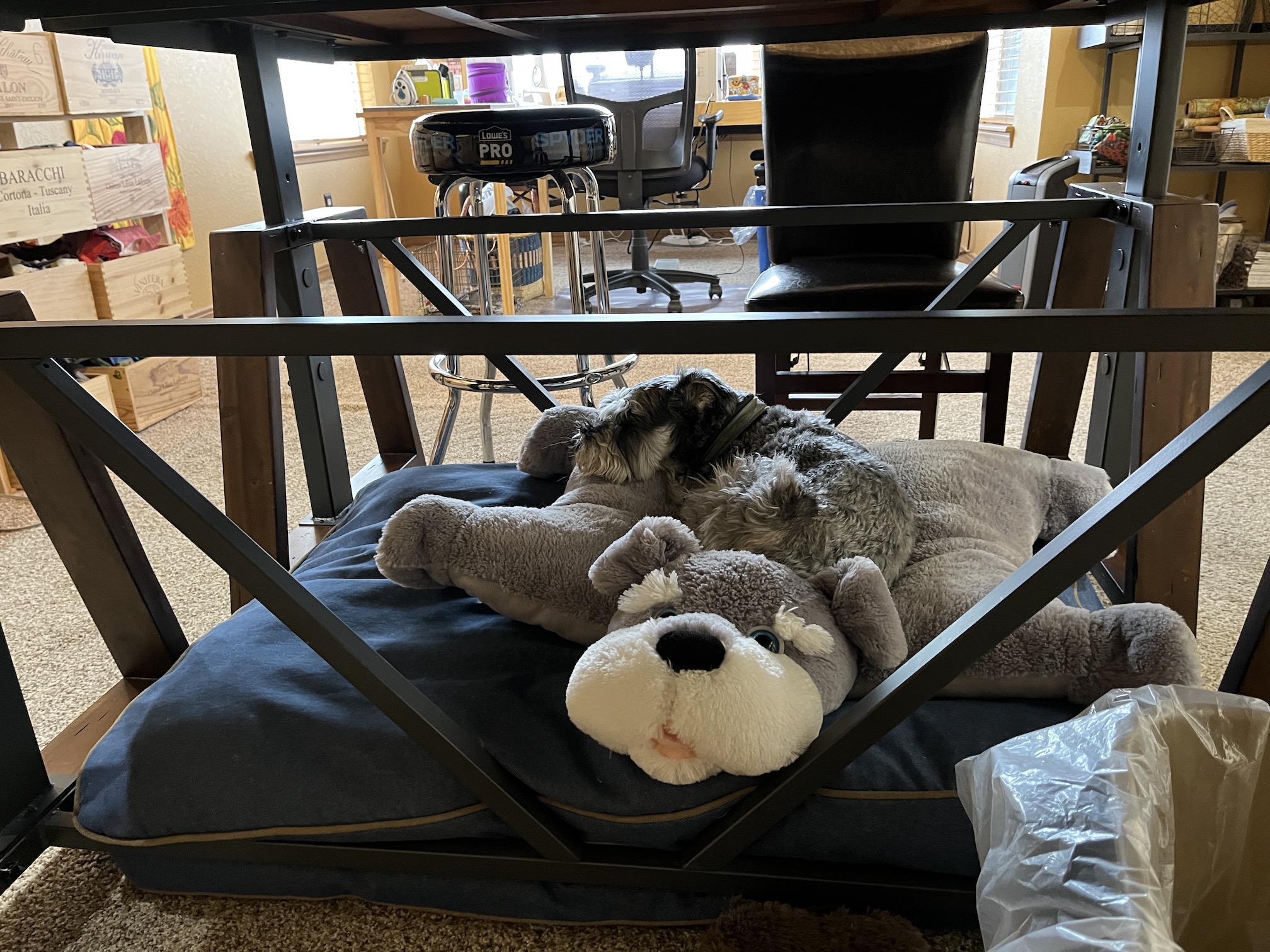 I continue with more projects in Part II of this series of posts, but let me close the post with pictures of Mike the Miniature Schnauzer at one of his favorite places – a home improvement store. He loves to ride around in the cart (we call him “Mike in the Box”).